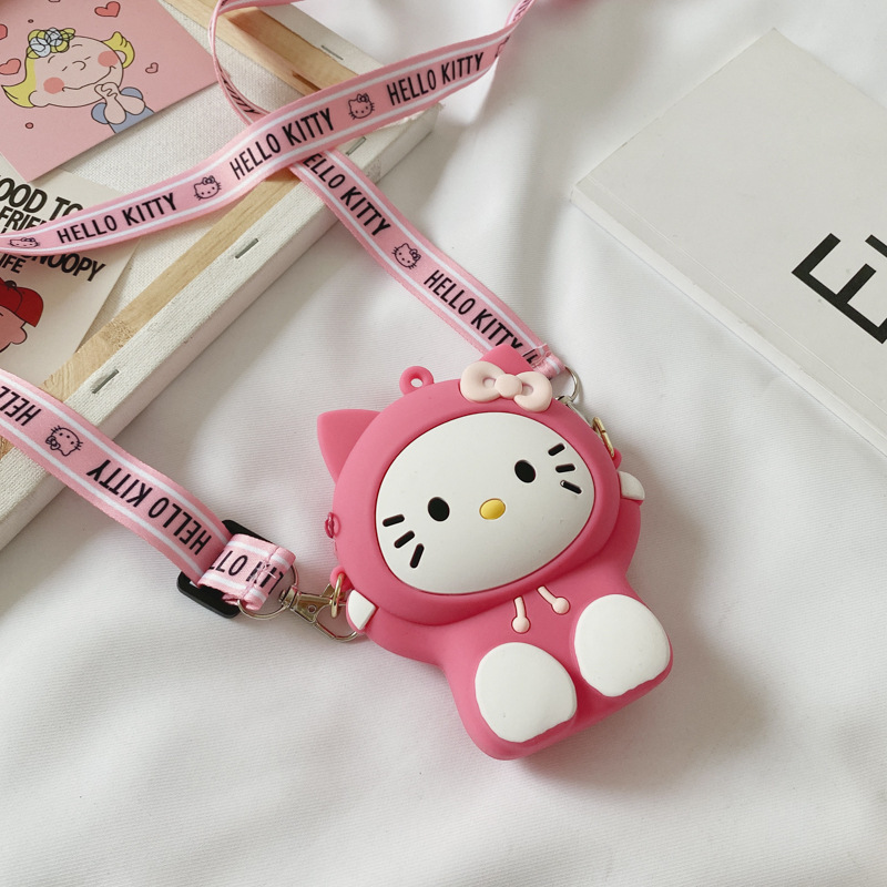 Silicone 2021 New Children's bags, fashionable cartoon KT cat shoulder bag, Girls' mini crossbody bag, Girls' coin purse