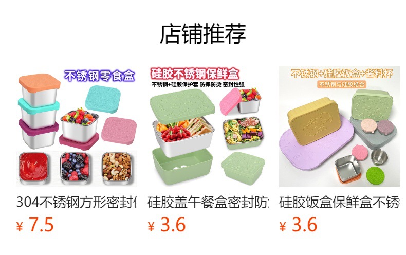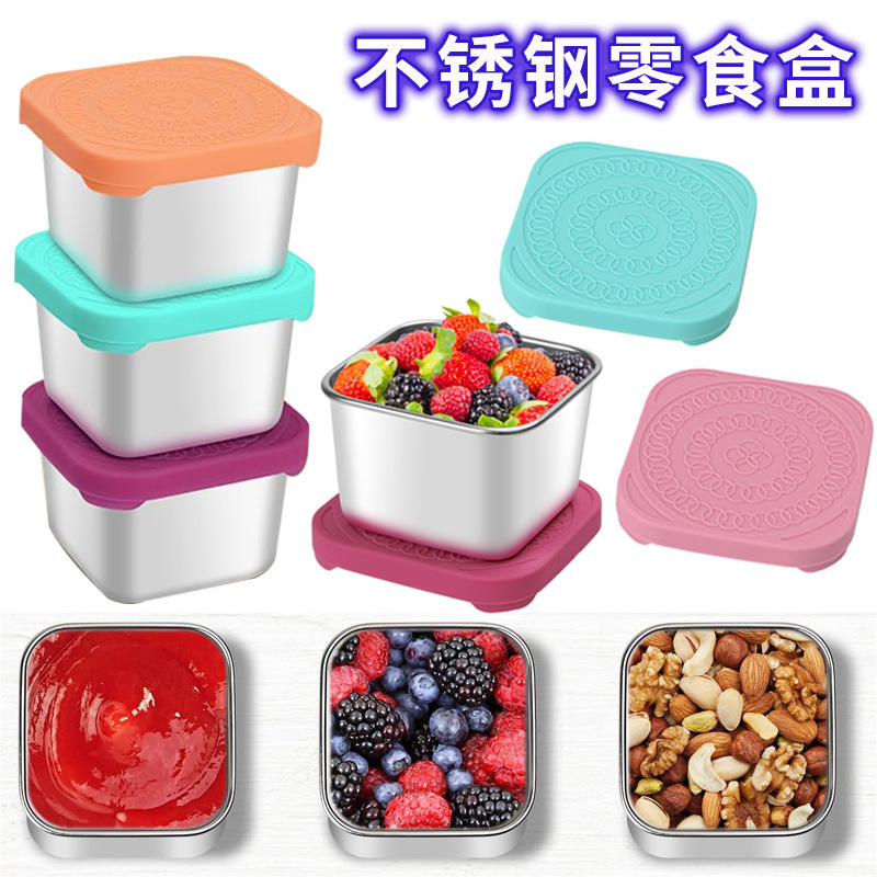 Stainless steel square sealed food storage box, ice cream silicone sauce box, picnic lunch box, children's lunch snack box