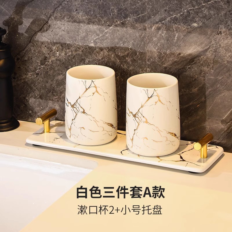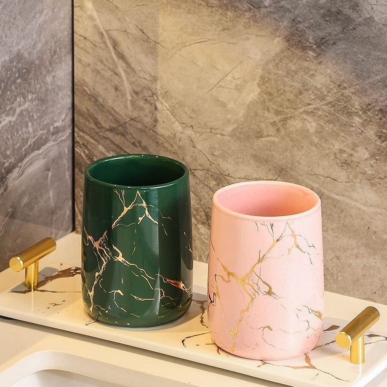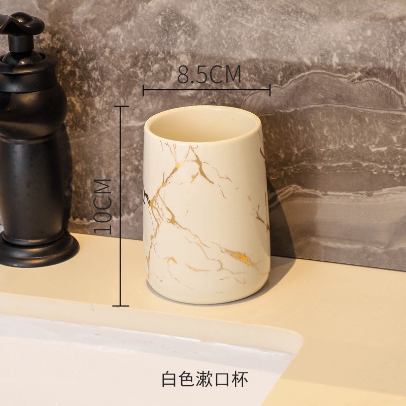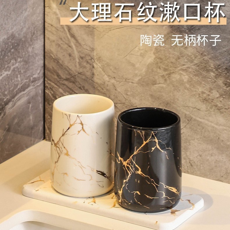Simple and creative couple washbasin cups, home bathroom ceramic toothbrush cups, marble-patterned handless mouthwash cups