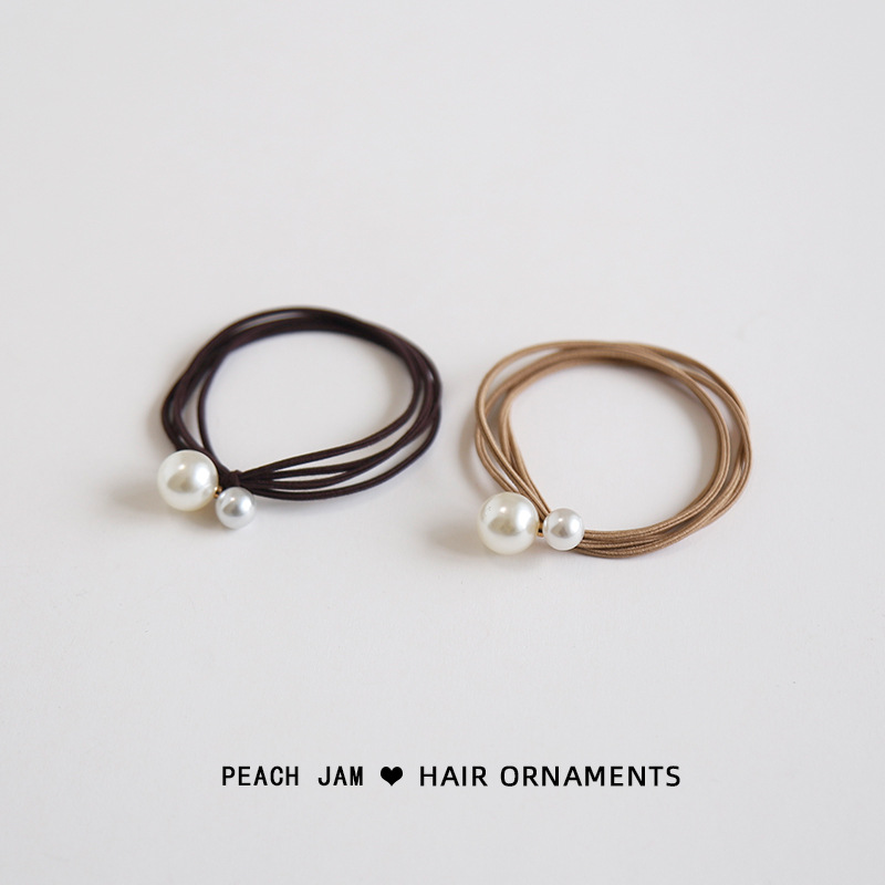 Simple and elegant pearl hair ties, multi-layer high-elasticity hair ties, hair bands, women's hair ties, Korean hair accessories, leather cases