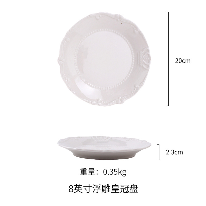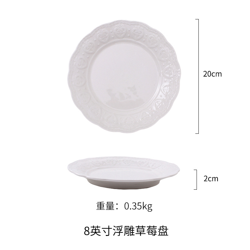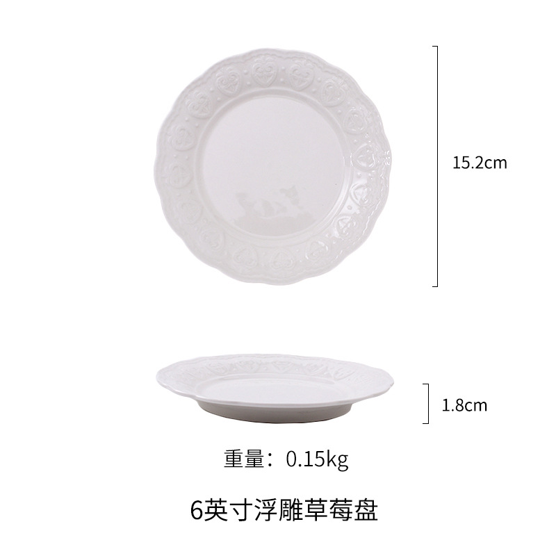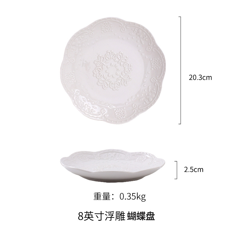 Simple European-style relief court ceramic plates, home dining inventory plates, creative lace plates, Western plates, cake plates, stainless steel food storage boxes