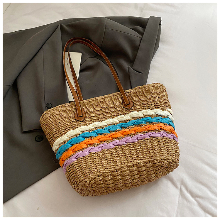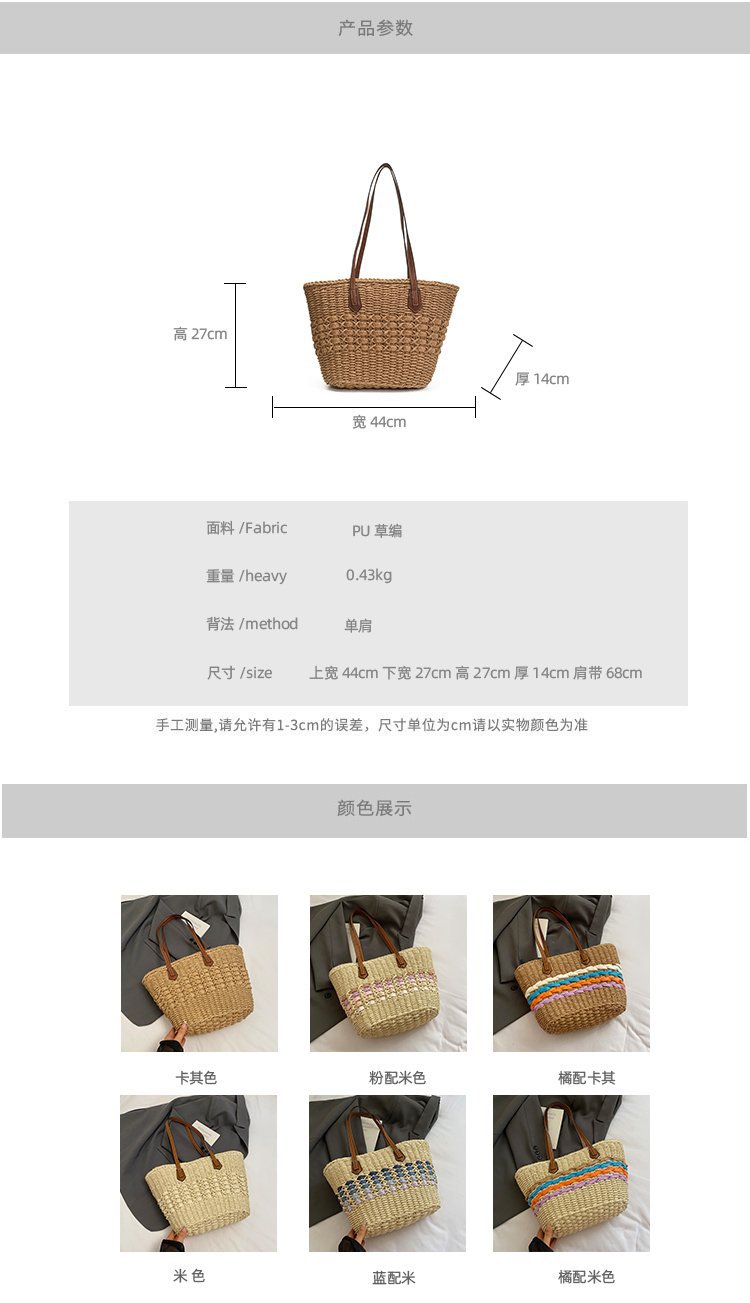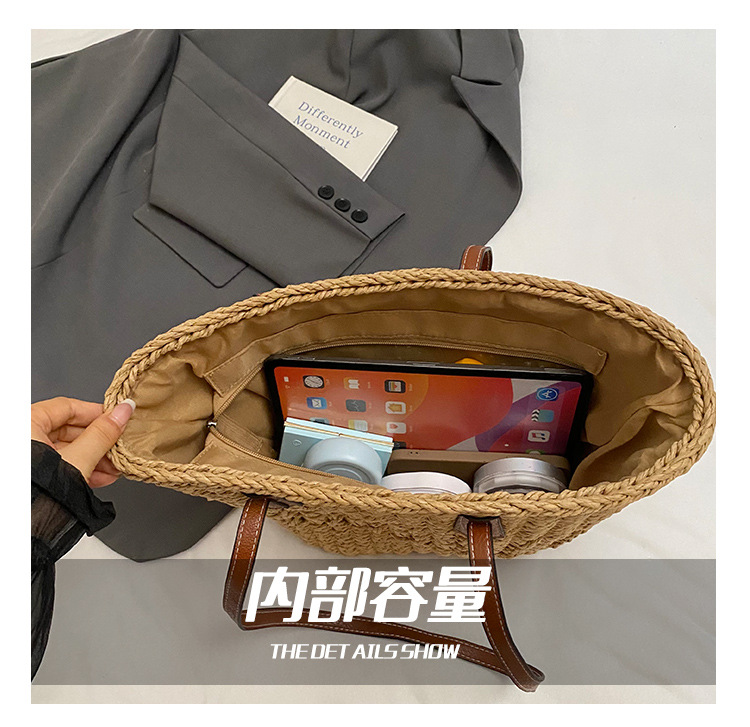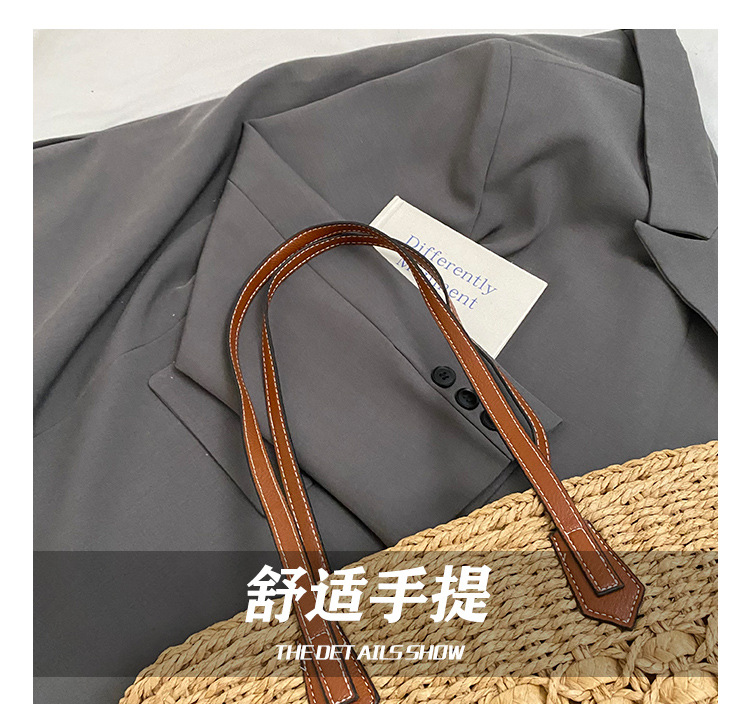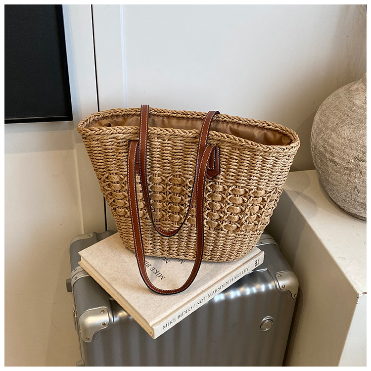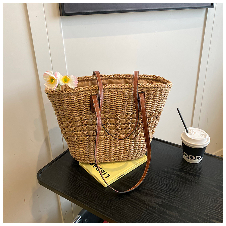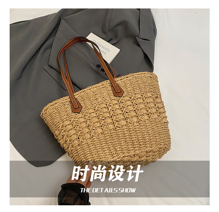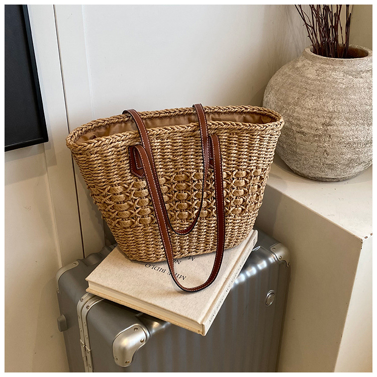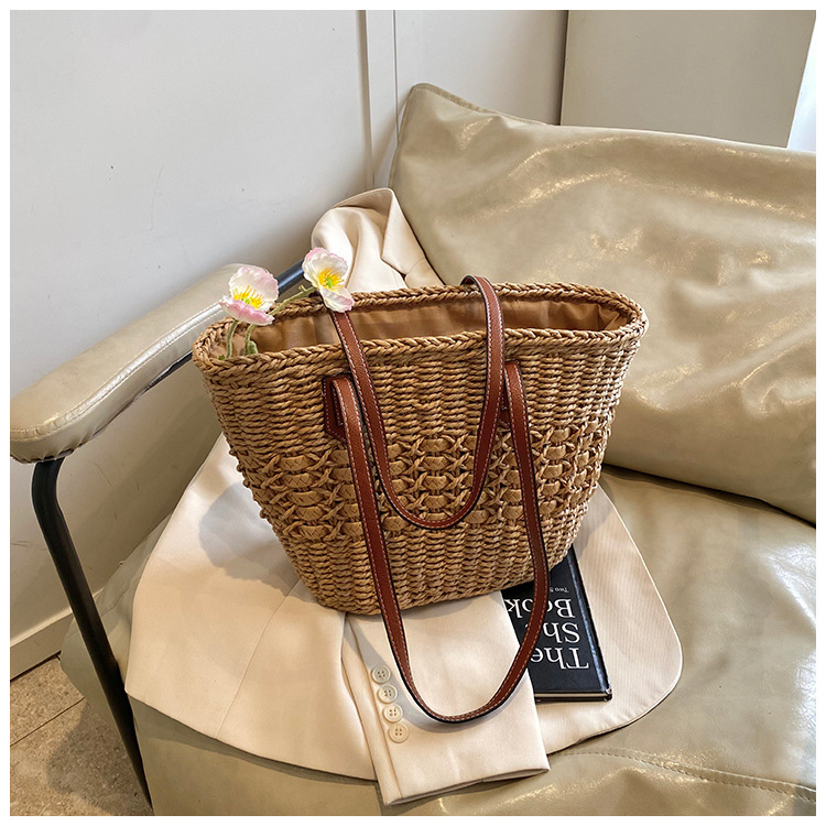 Simple, hollowed-out straw weaving bag, fashionable single-shoulder beach bag, simple and elegant woven women's bag