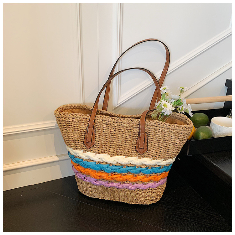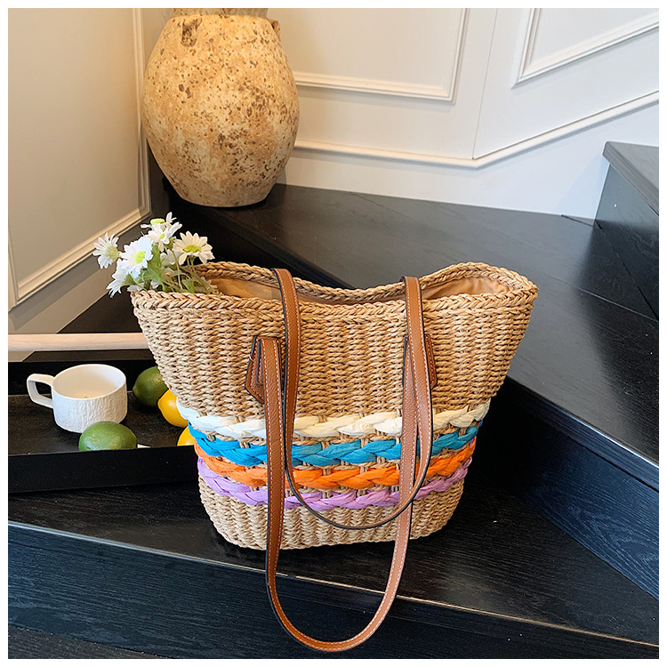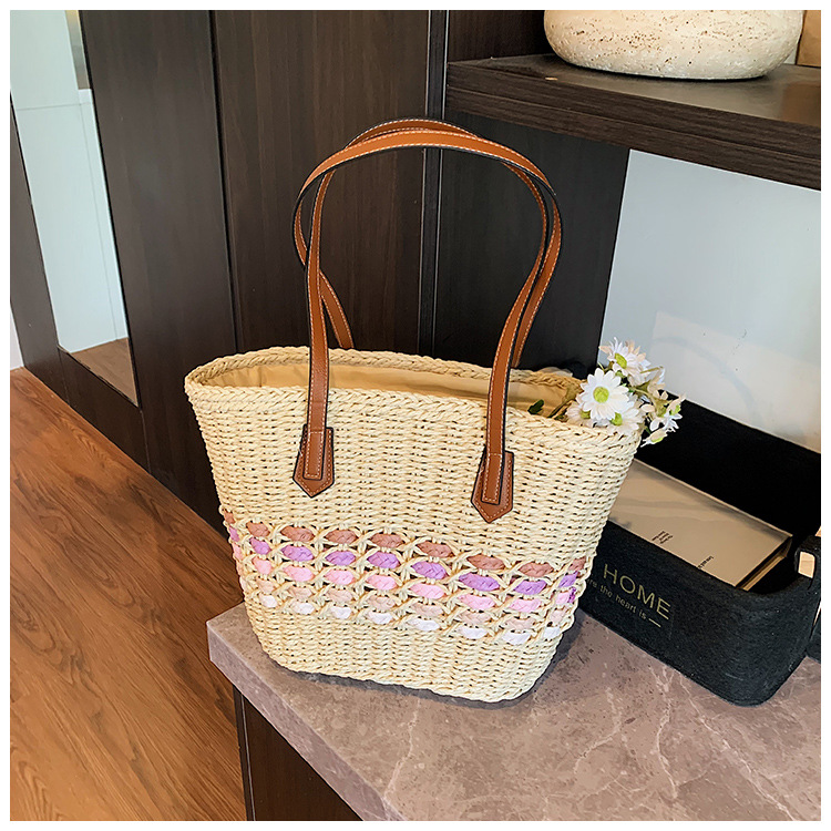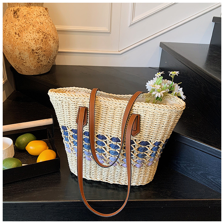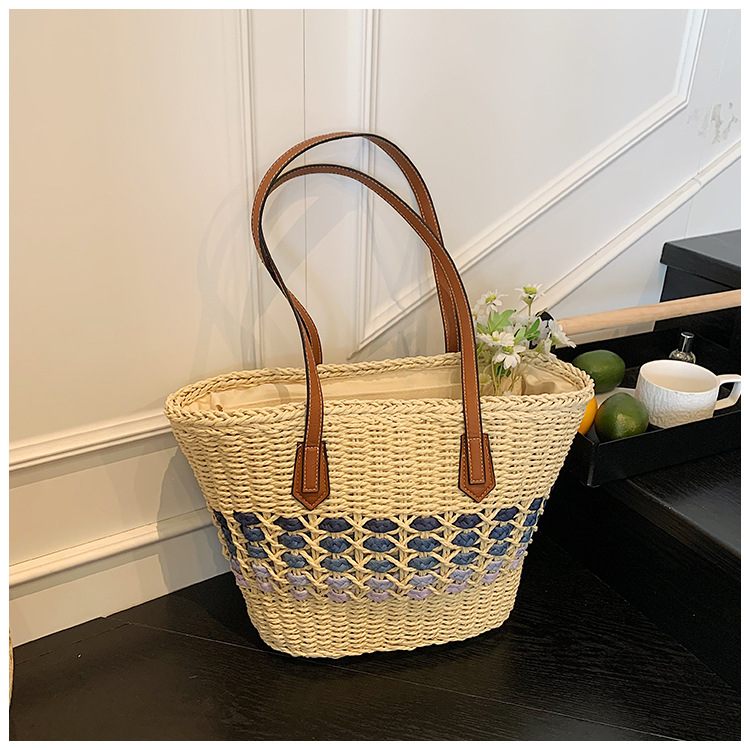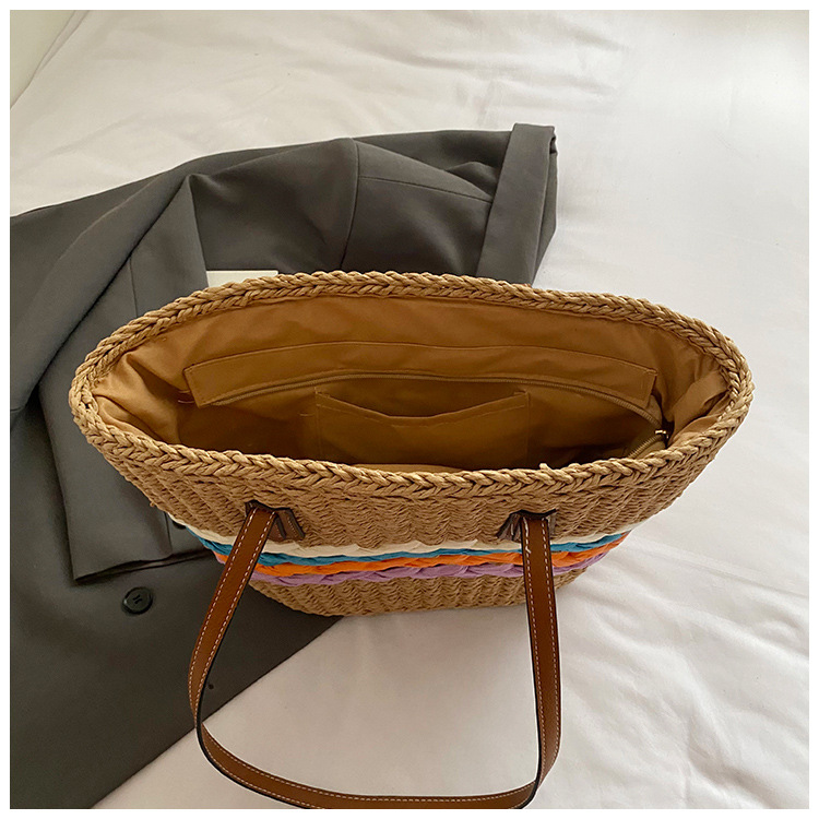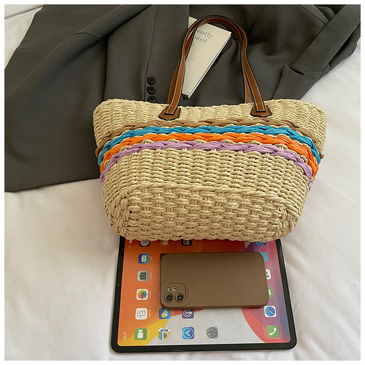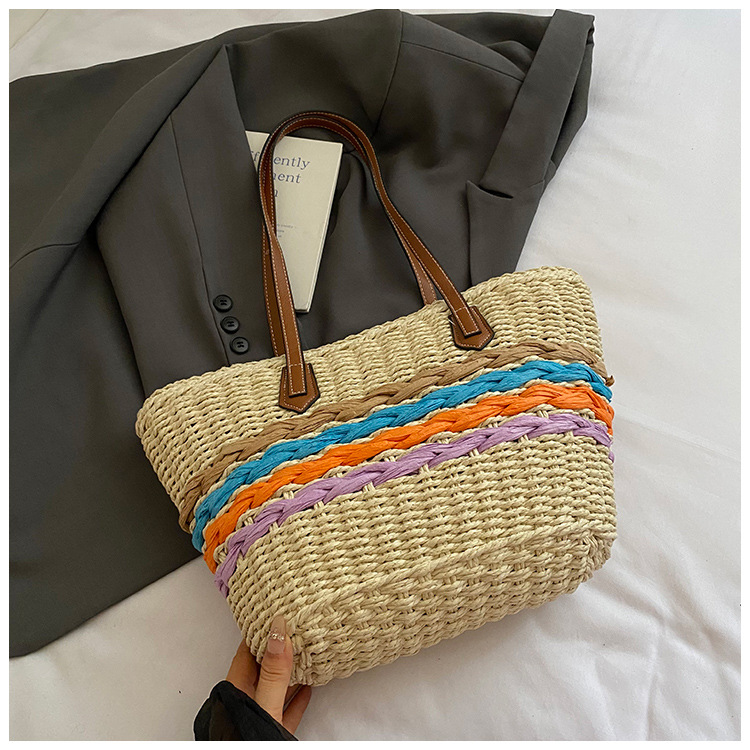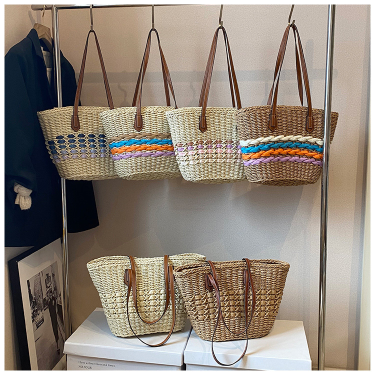Simple, hollowed-out straw weaving bag, fashionable single-shoulder beach bag, simple and elegant woven women's bag