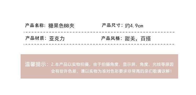 Simple oil-dripping BB clip, versatile color children's hair won't hurt, side bangs clip, candy-colored cute broken hair clip for women
