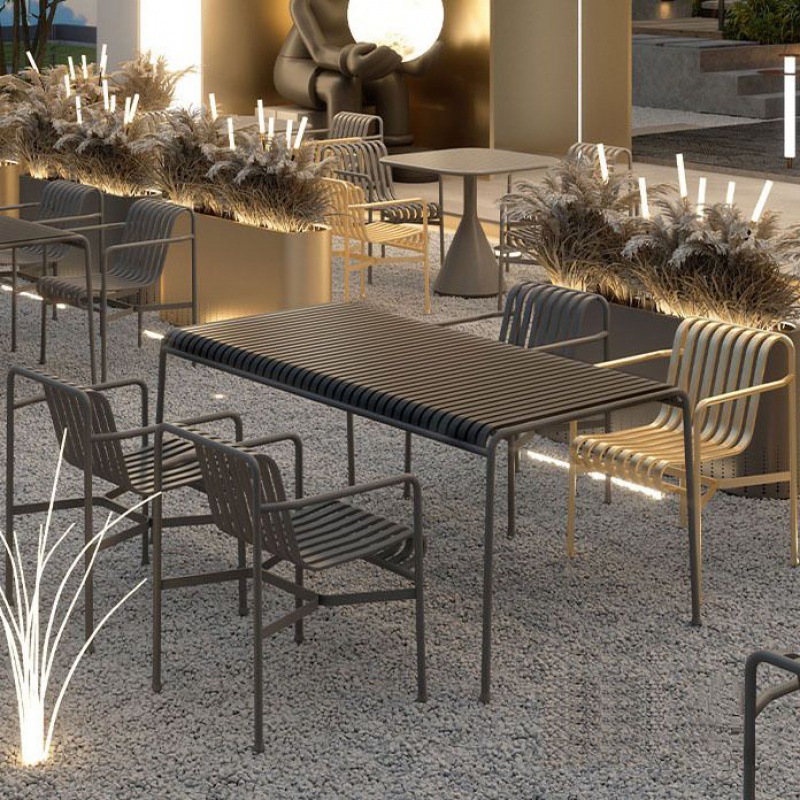 Simple outdoor table and chair, bar, lounge, industrial-style dining table and chair set, restaurant, casual square table, one table with four chairs, ins
