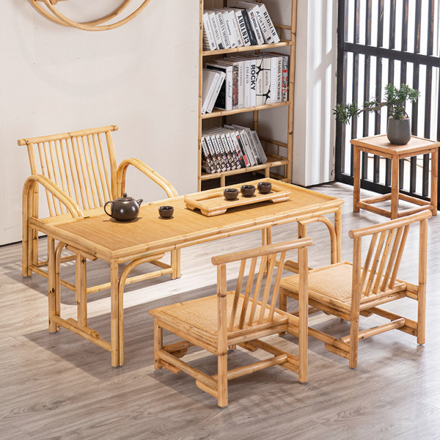 Simple rectangular tatami coffee table, Japanese tea table and chair combination, tea house tea table, bamboo and rattan Zen style