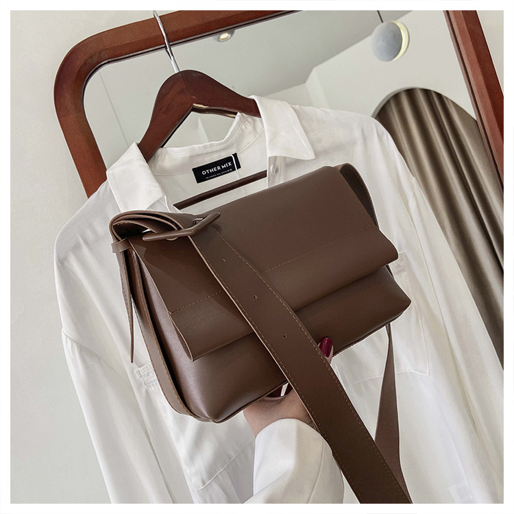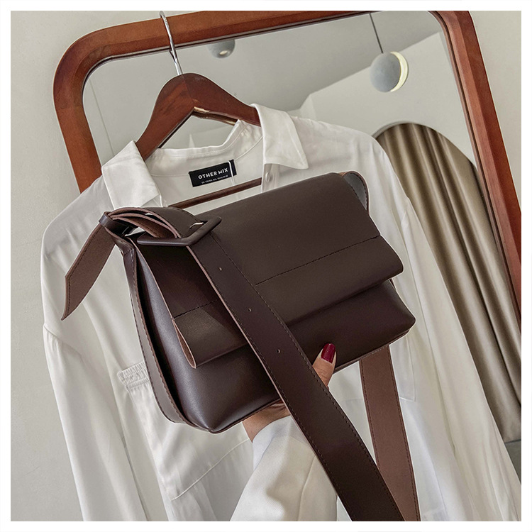 Simple women's leather casual Japanese retro bag, women's flip cover three-dimensional stylish trendy brand simple mature woman's shoulder bag