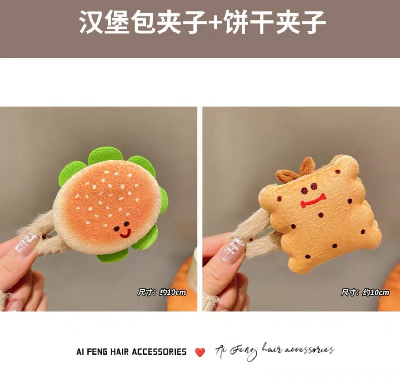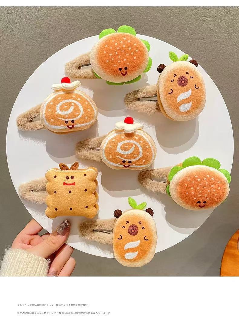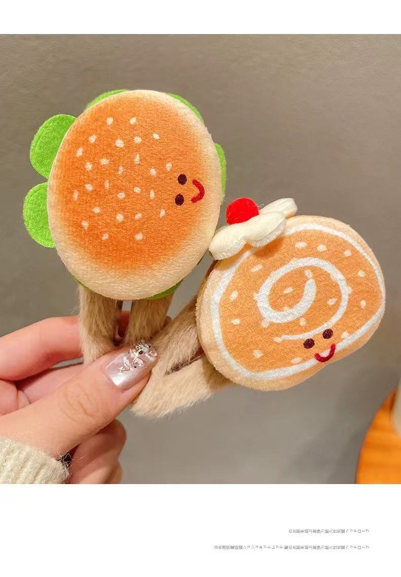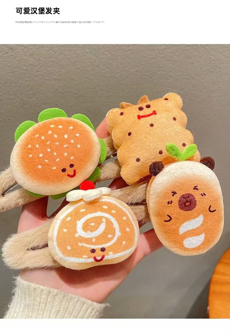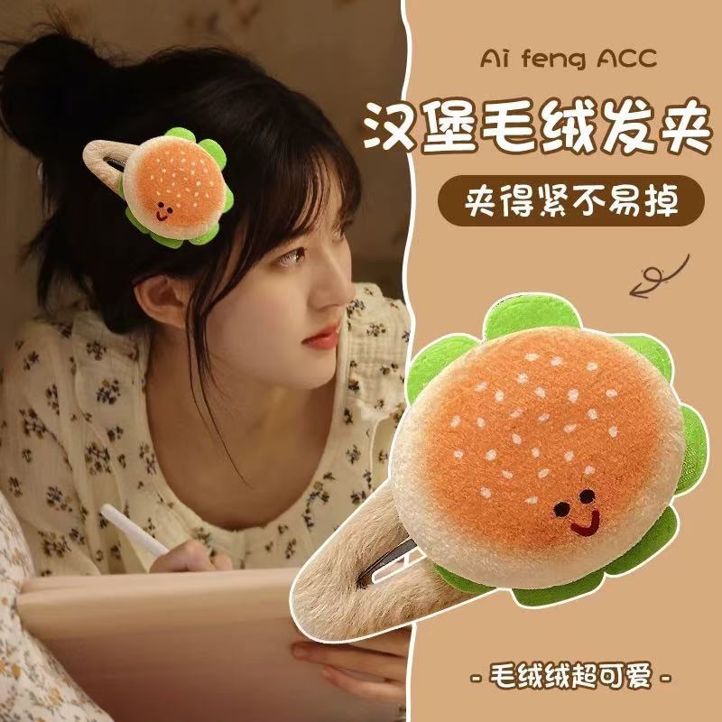 Simulated hamburgers, plush hairpins, BB clips, funny food for girls, playful clips, Swiss hairpins, children's headwear for girls