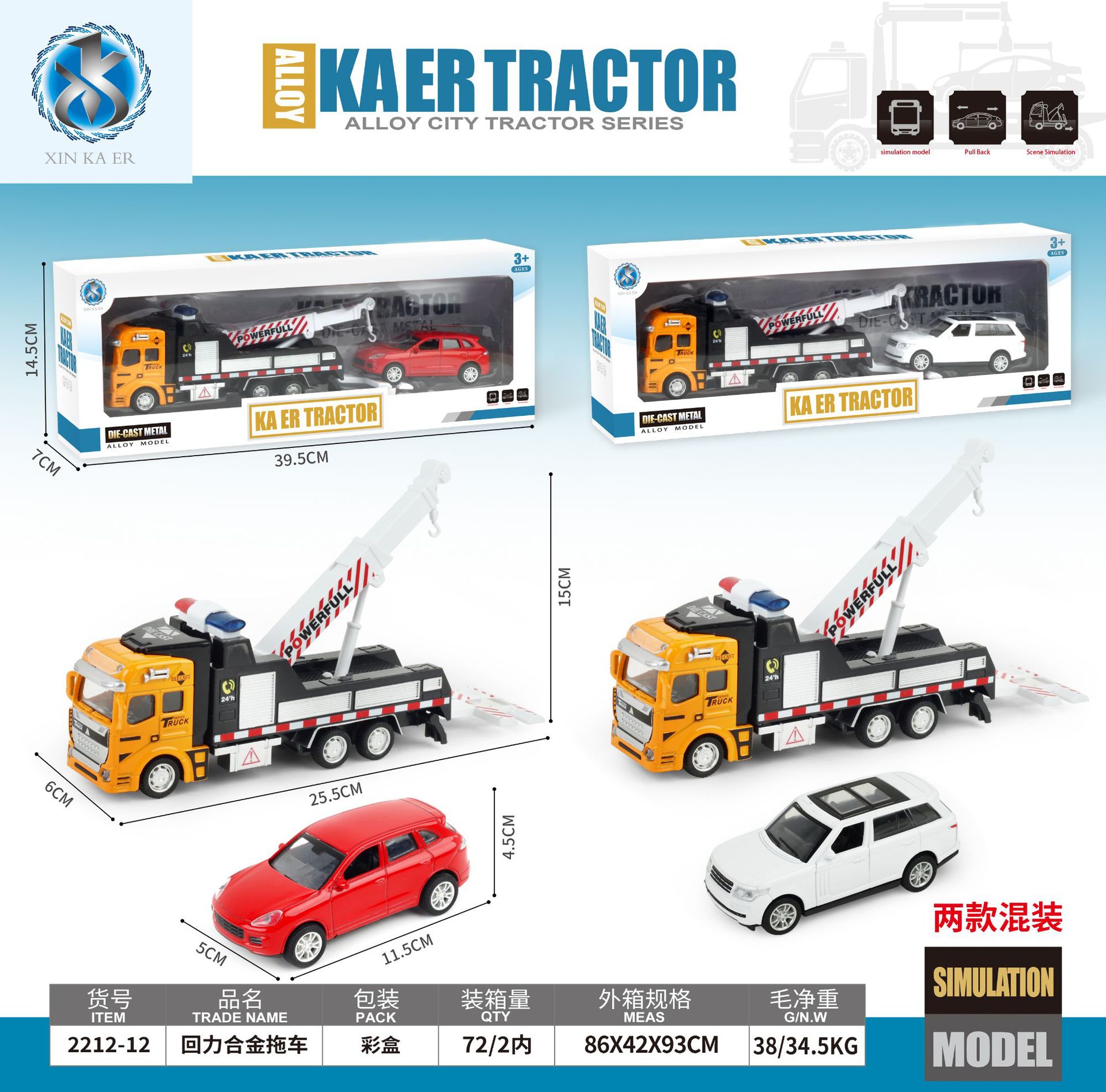 Simulation alloy excavator mixer, forklift, large crane tower, crane car, engineering series model car, children's alloy toys