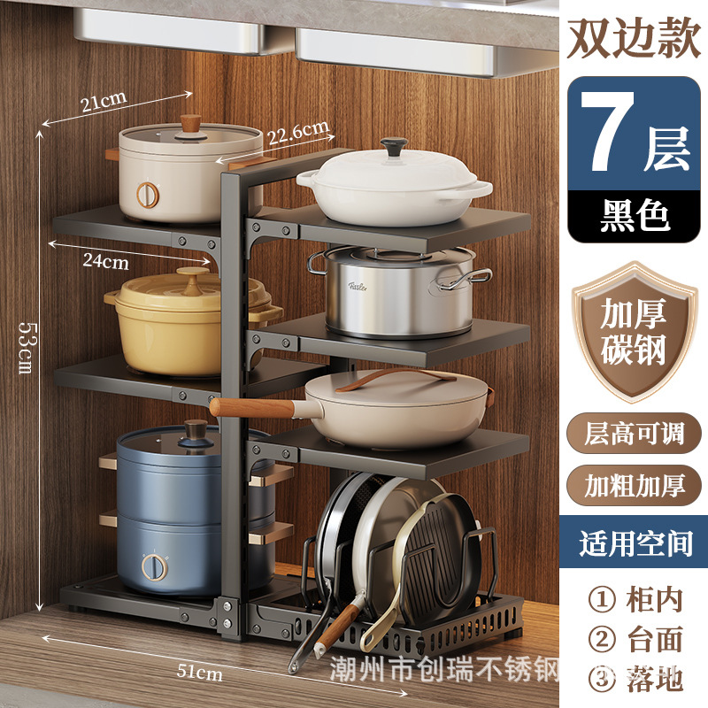 Sink under pot rack, countertop, double-cup pot rack, cross-border large pot, flat-bottomed pot storage cabinet, multi-layer storage