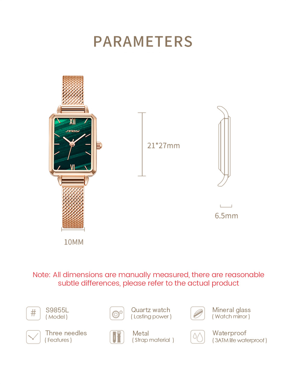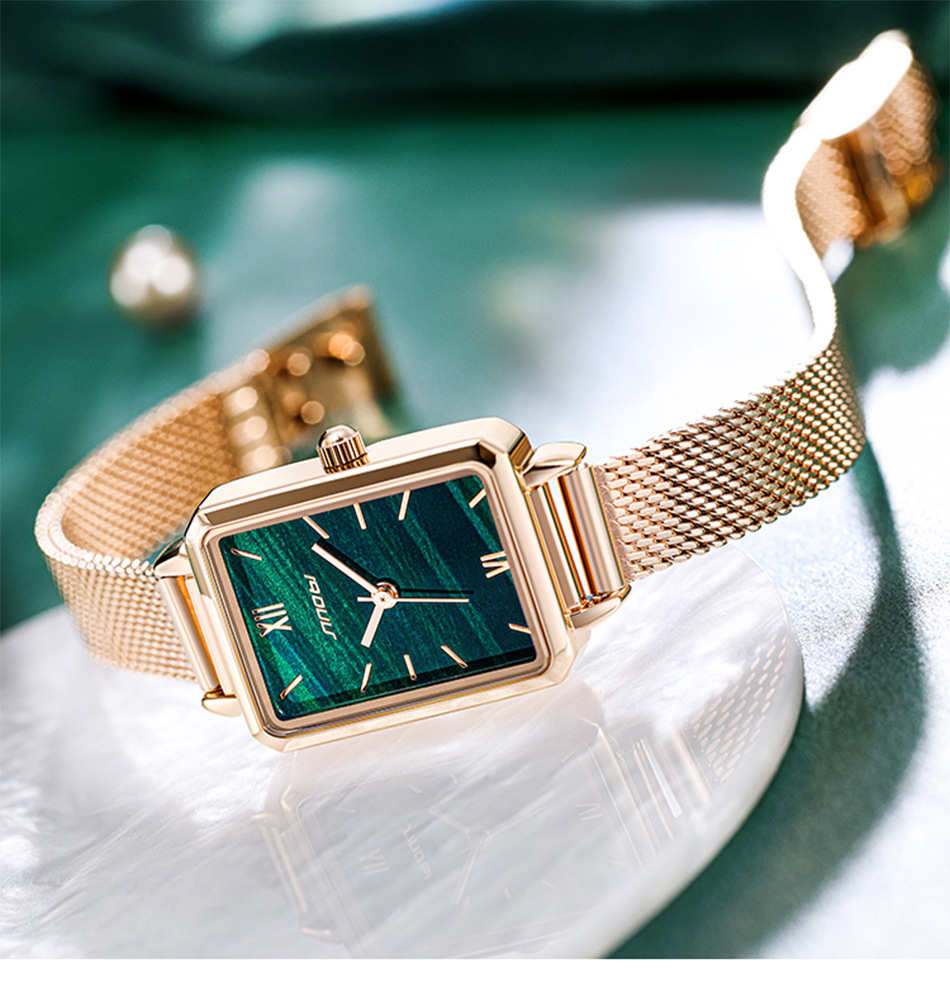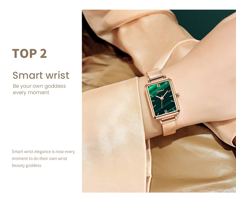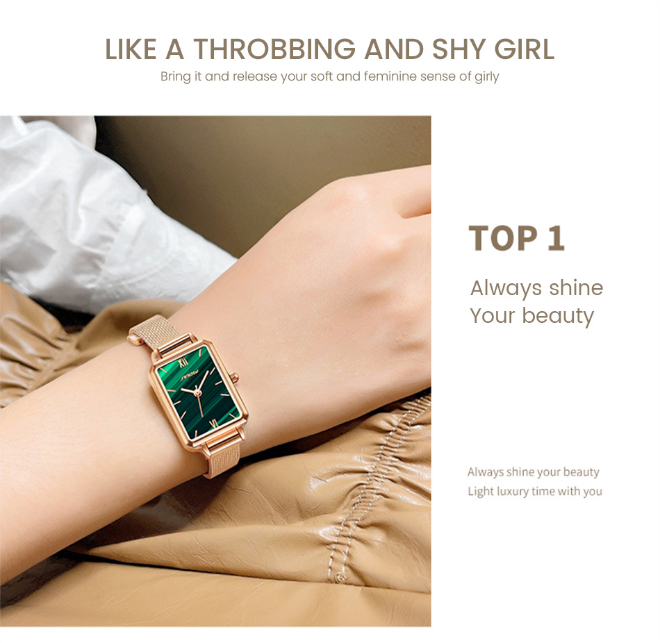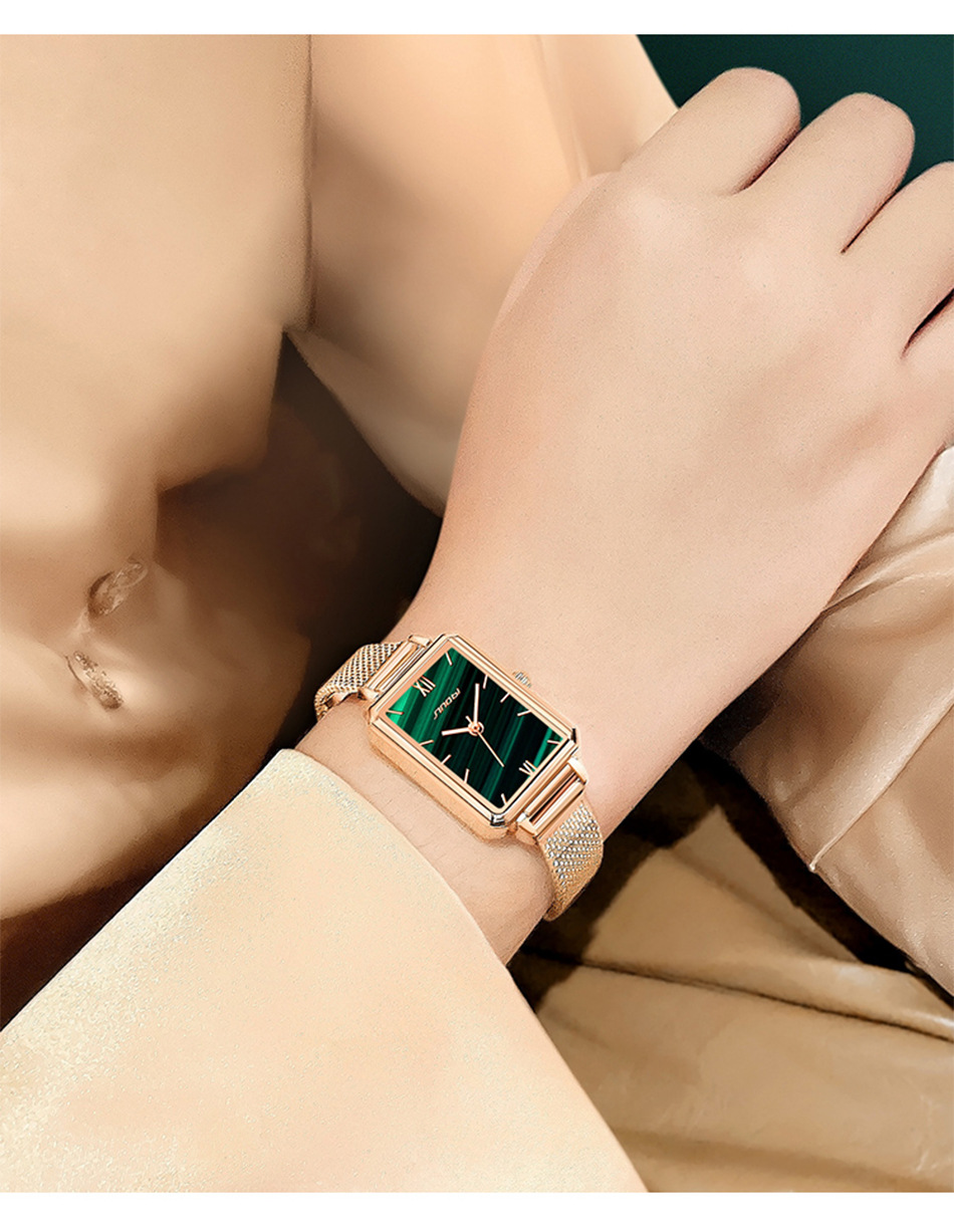sinobi retro Little Green Watch Women's fashionable, elegant and stylish women's watch with mesh strap, light luxury wristwatch 9855