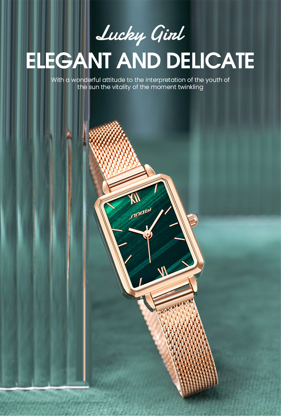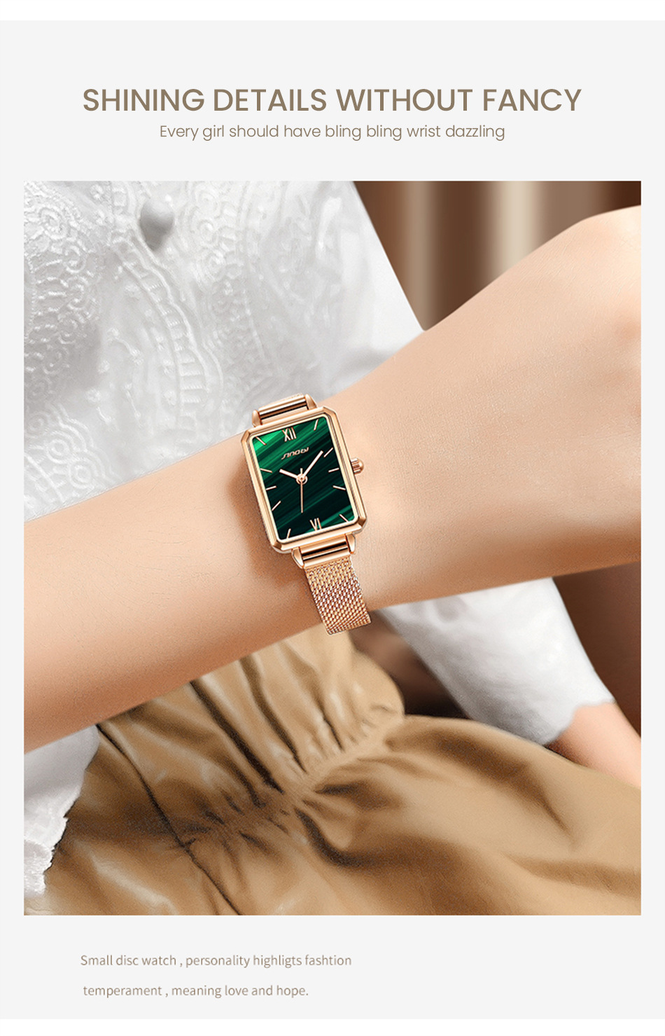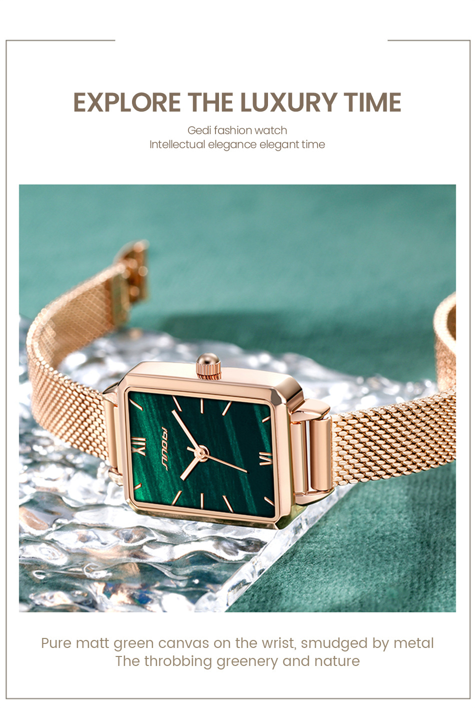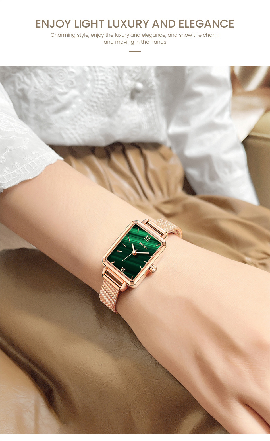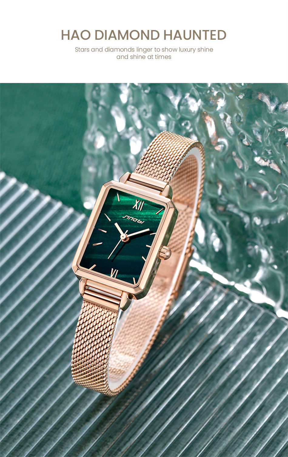 sinobi retro Little Green Watch Women's fashionable, elegant and stylish women's watch with mesh strap, light luxury wristwatch 9855