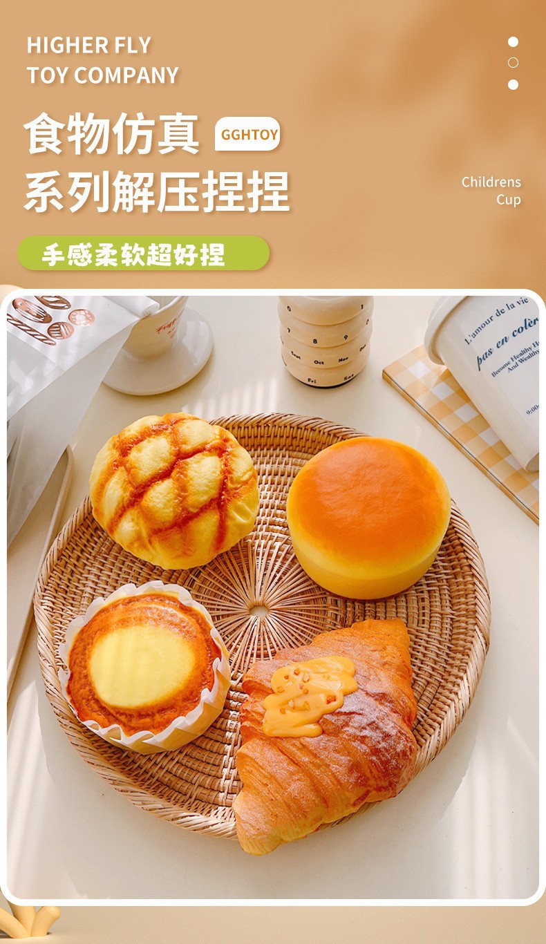 Slow Rebound Pinching Fun Food Play Xiaohongshu's same creative simulation bread stress-relieving toy, stress-relieving magic tool model toy, simulation fruit and vegetable food