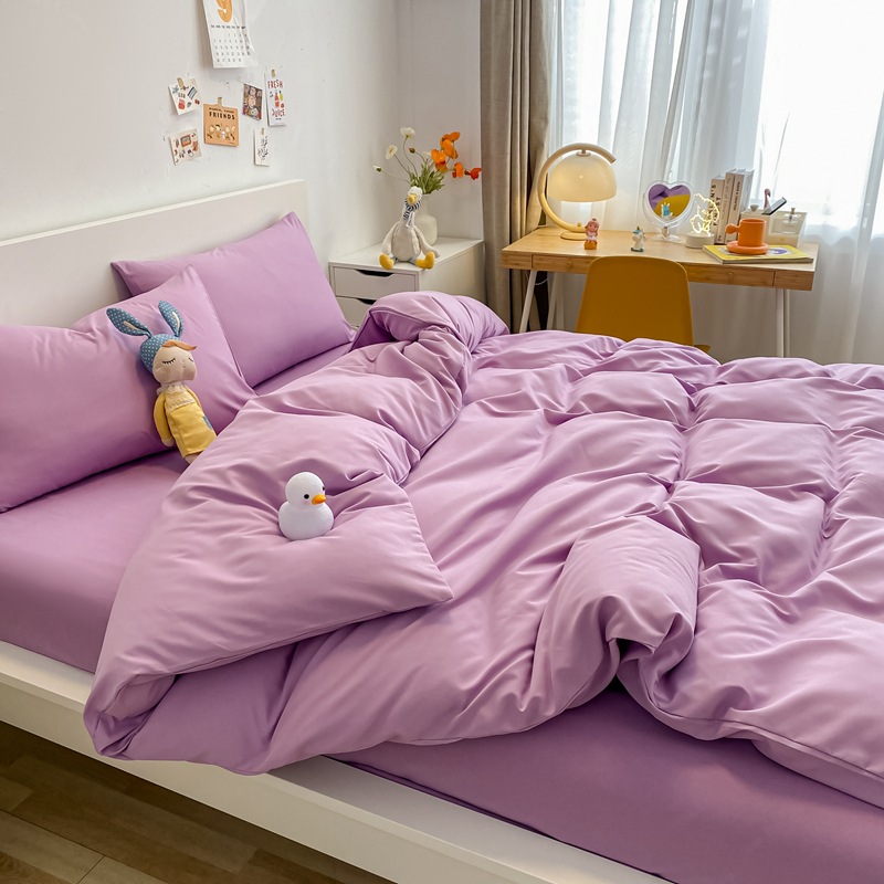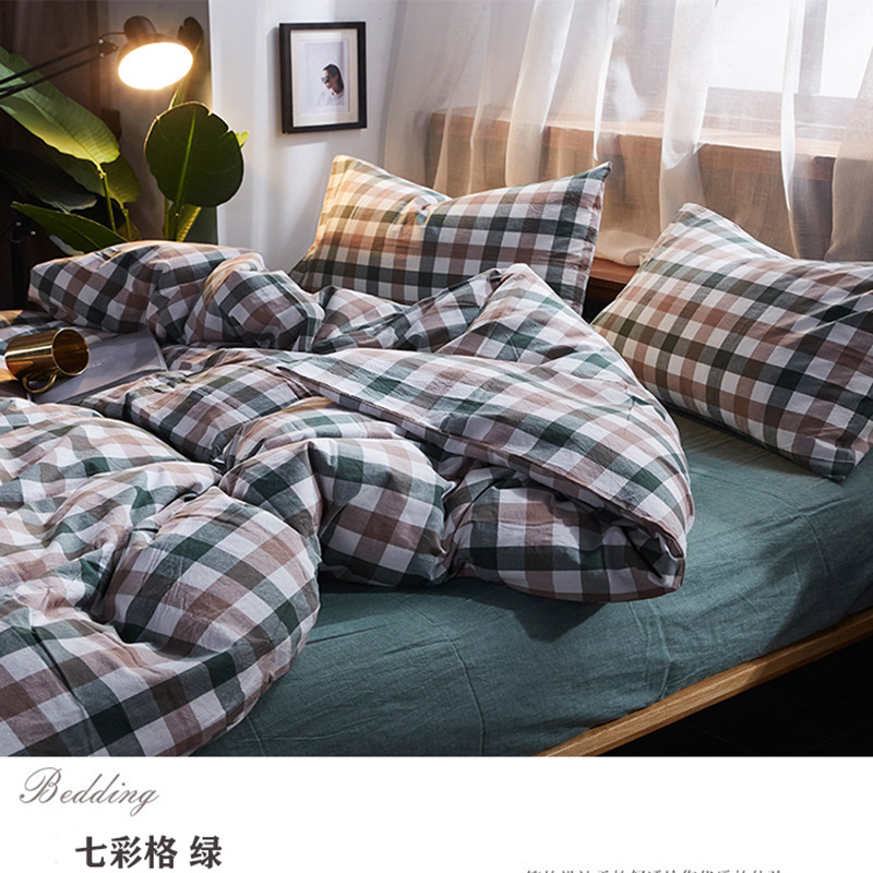Small-amount customized wholesale of all-cotton and pure cotton quilt covers and duvet covers, single pieces of checkered and striped solid color woven washed cotton, simple and elegant