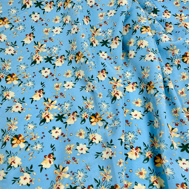Small floral print dress, four-sided elastic fabric, export clothing, T-shirt, accessories, bags, colored woven jacquard fabric