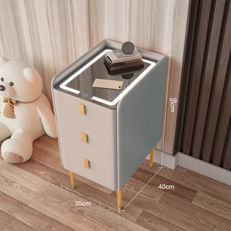 Small smart bedside table with safe, light luxury mini bedside cabinet, wireless charging, narrow bedroom storage cabinet