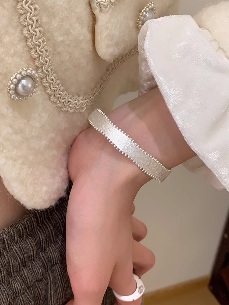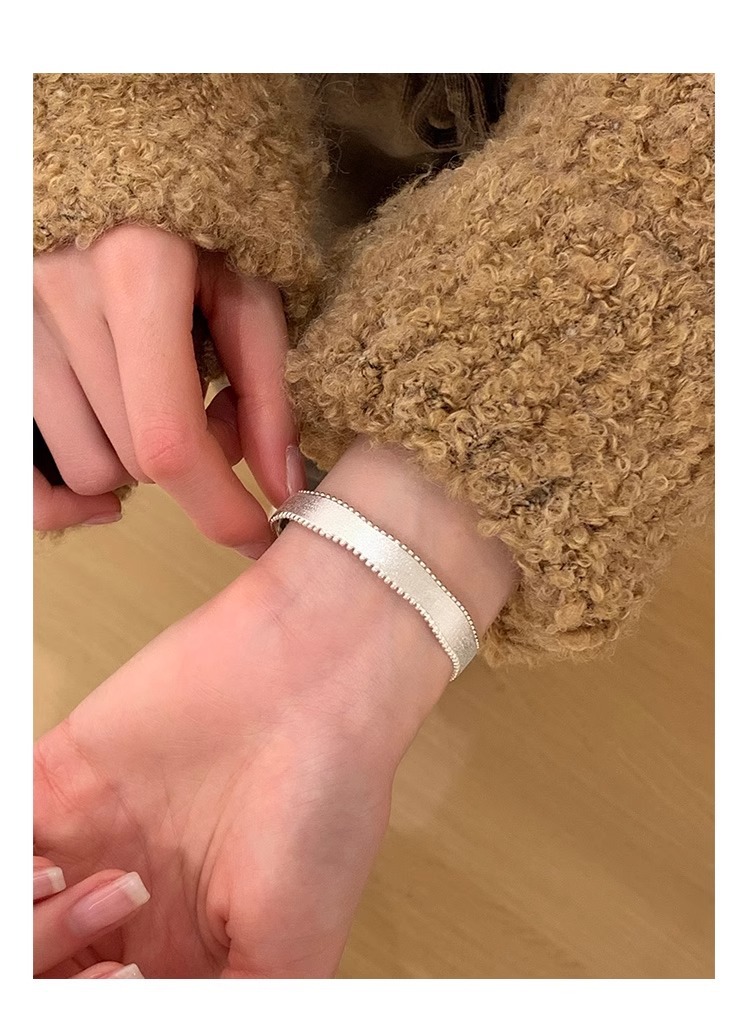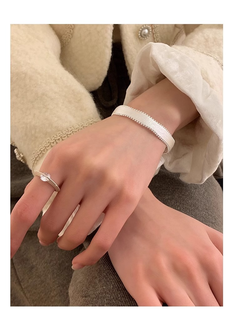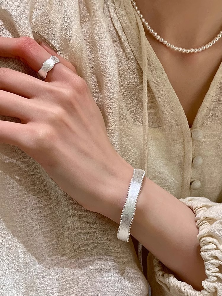 "Snow Satin" Korean original single hand-brushed silk satin rice grain open bracelet ring, ins style light luxury high-end jewelry