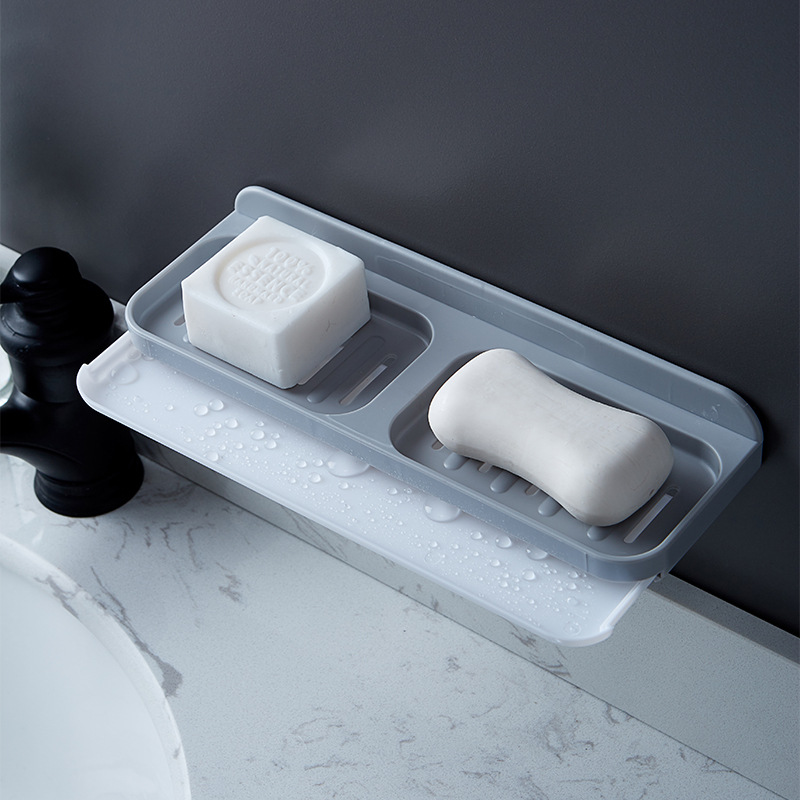 Soap box, soap rack, wall-mounted draining soap box, new bathroom, double-layer soap storage rack without perforation