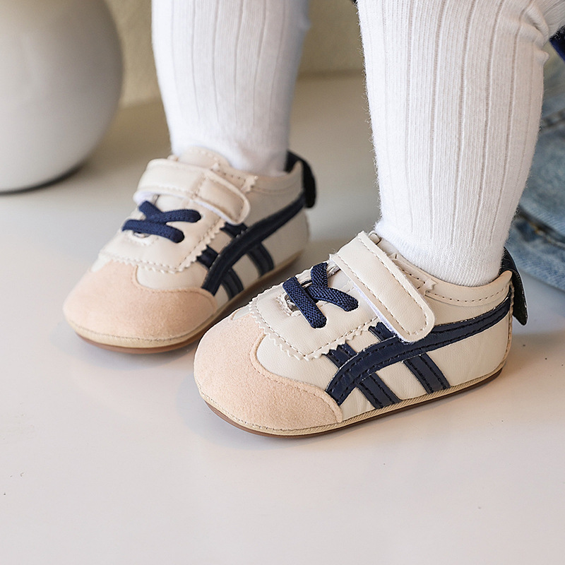 Soft-soled anti-slip walking shoes for infants aged 0-1 year old, boys and girls, 6-9-12 months, and sports color-blocked white shoes