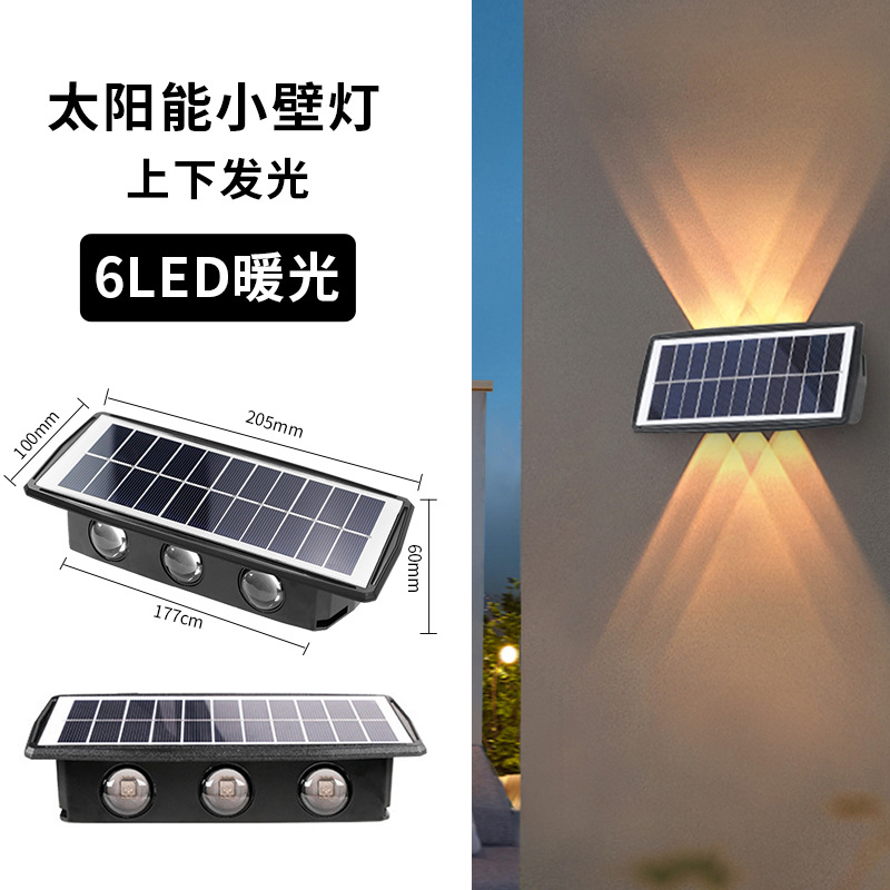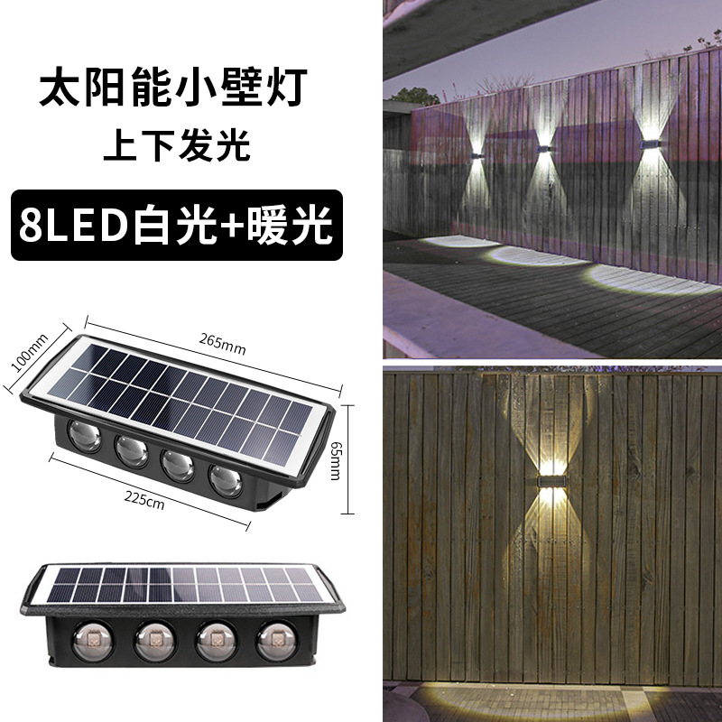 Solar double-head wall lamp, outdoor garden lamp, waterproof, outdoor up and down luminous, wall decoration garden lamp, wall-washing lamp