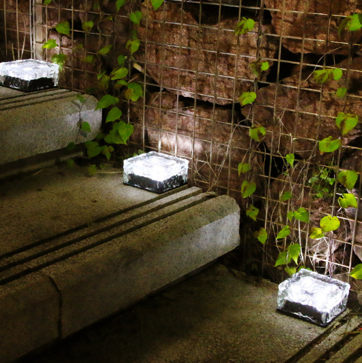 Solar garden lights, ice brick lights, LED ice block buried outdoor lawn, garden steps, landscape decoration and atmosphere lights