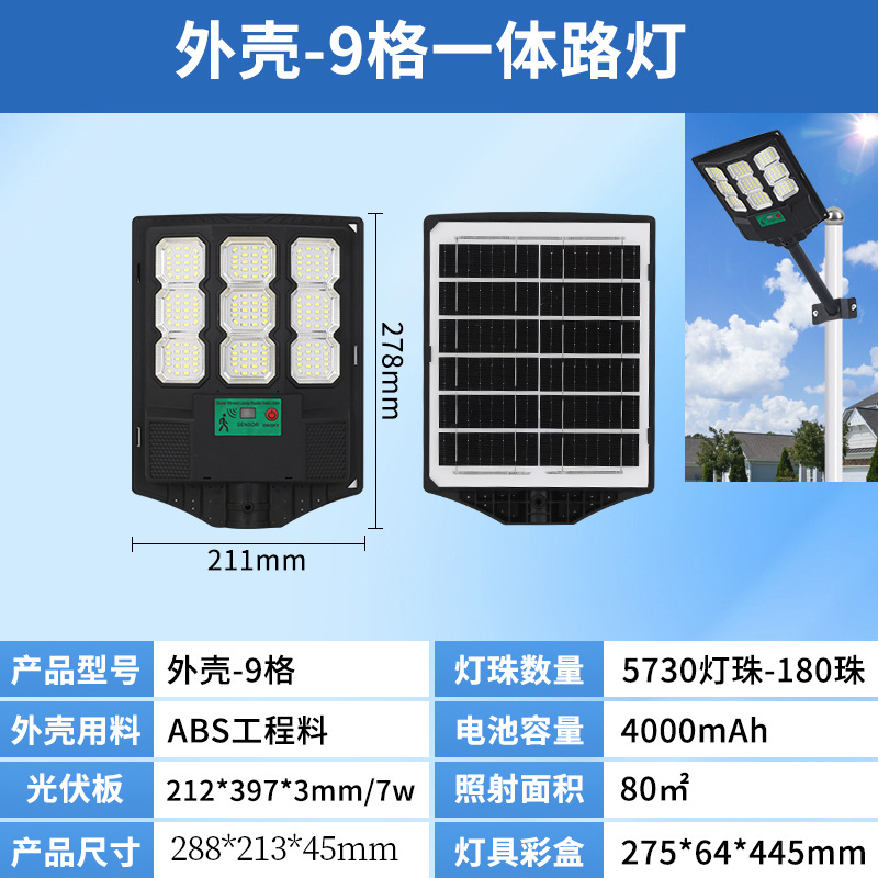 Solar integrated street lamps, high-power light-controlled radar sensor outdoor garden lamps, household environmentally friendly and energy-saving solar lamps