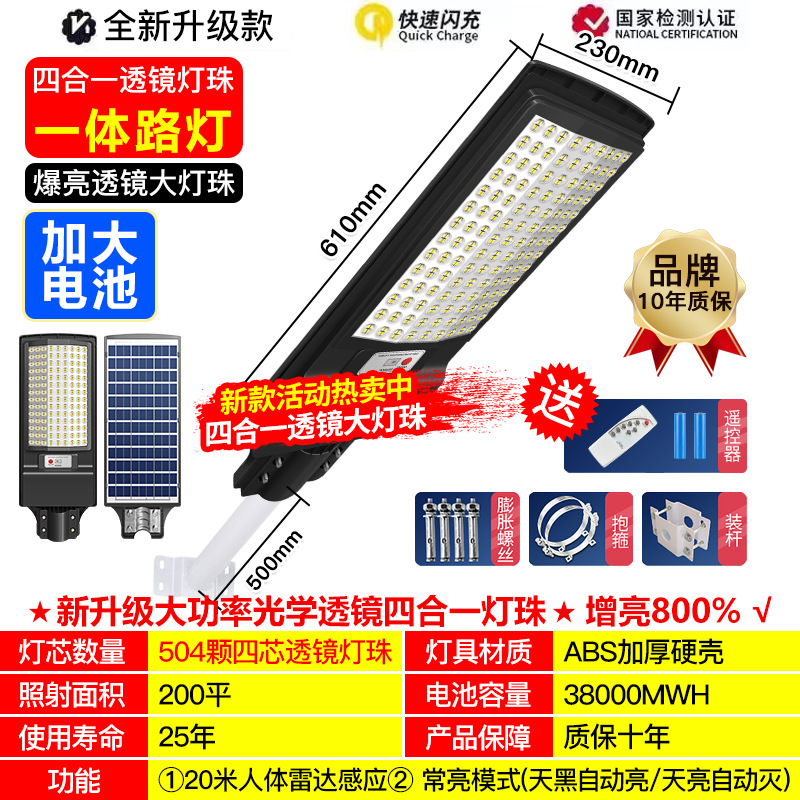Solar lighting fixtures, household outdoor garden lamps, integrated radar sensor lamps, waterproof and lightning-proof led solar lamps