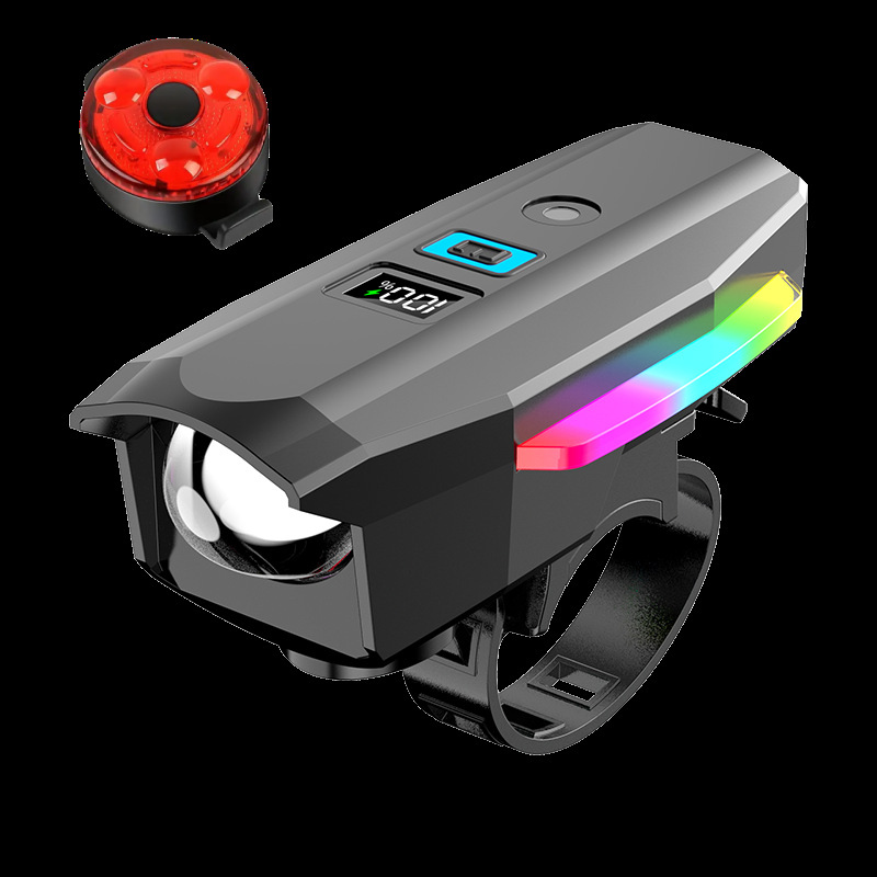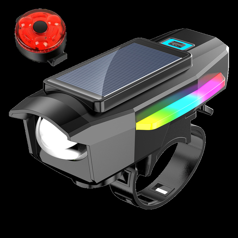 Solar-powered mountain bike lights, strong night riding bells, super loud general road bike headlight horns