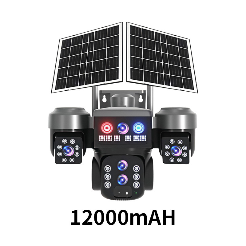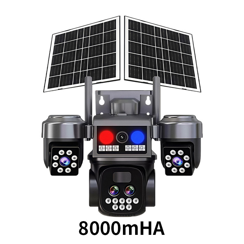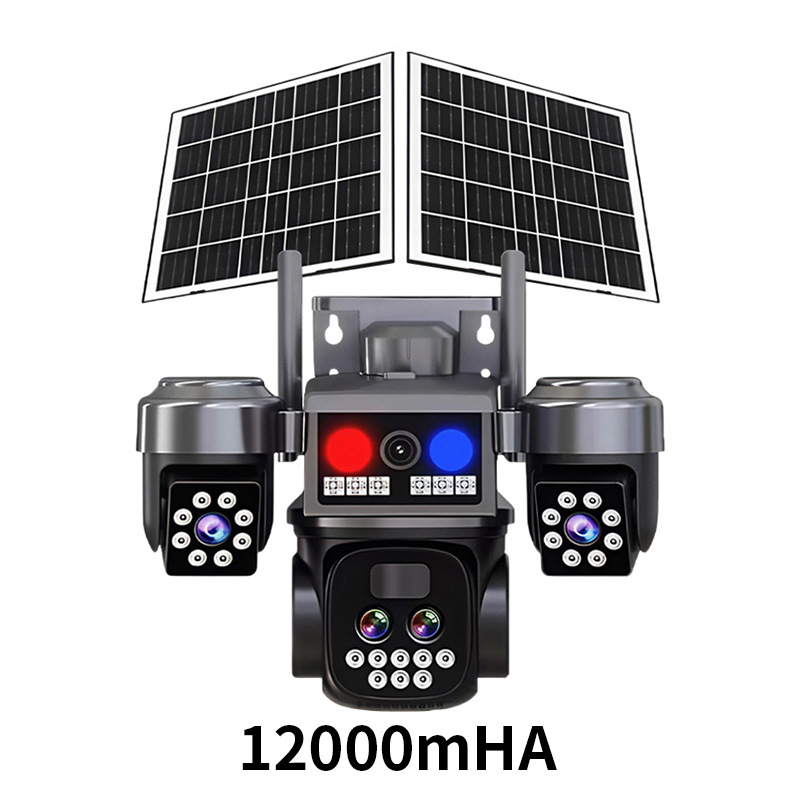 Solar-powered zoom camera, multi-lens tracking camera, dual solar panel outdoor monitoring camera
