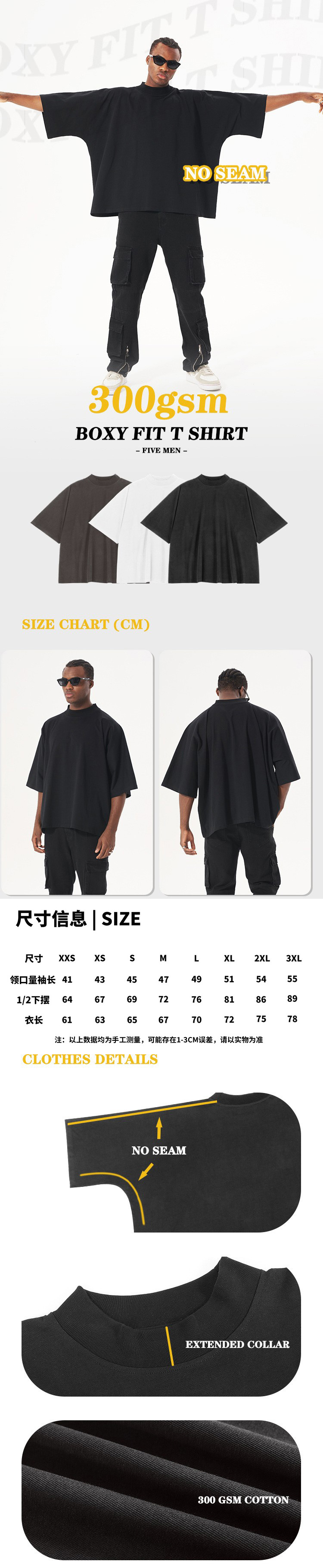Solid-color trendy men's short-sleeved T-shirt, heavyweight pure cotton half-sleeved men's T-shirt, summer round-neck T-shirt