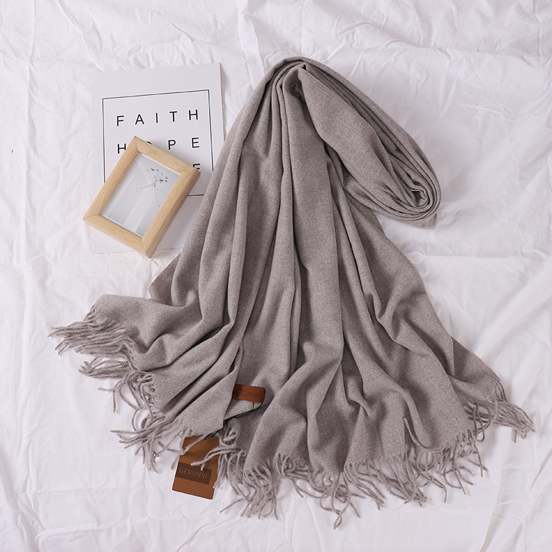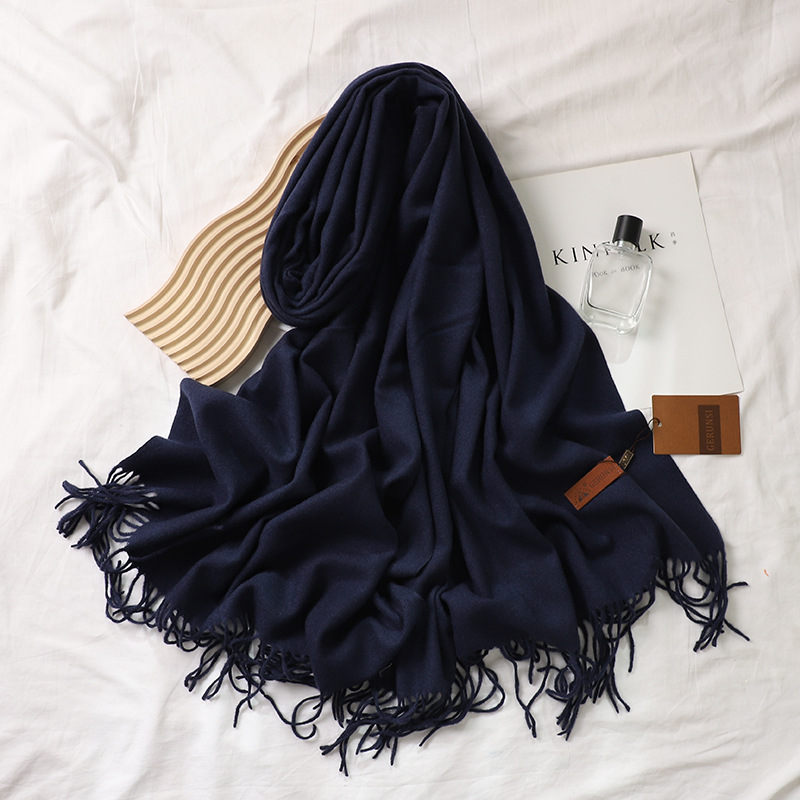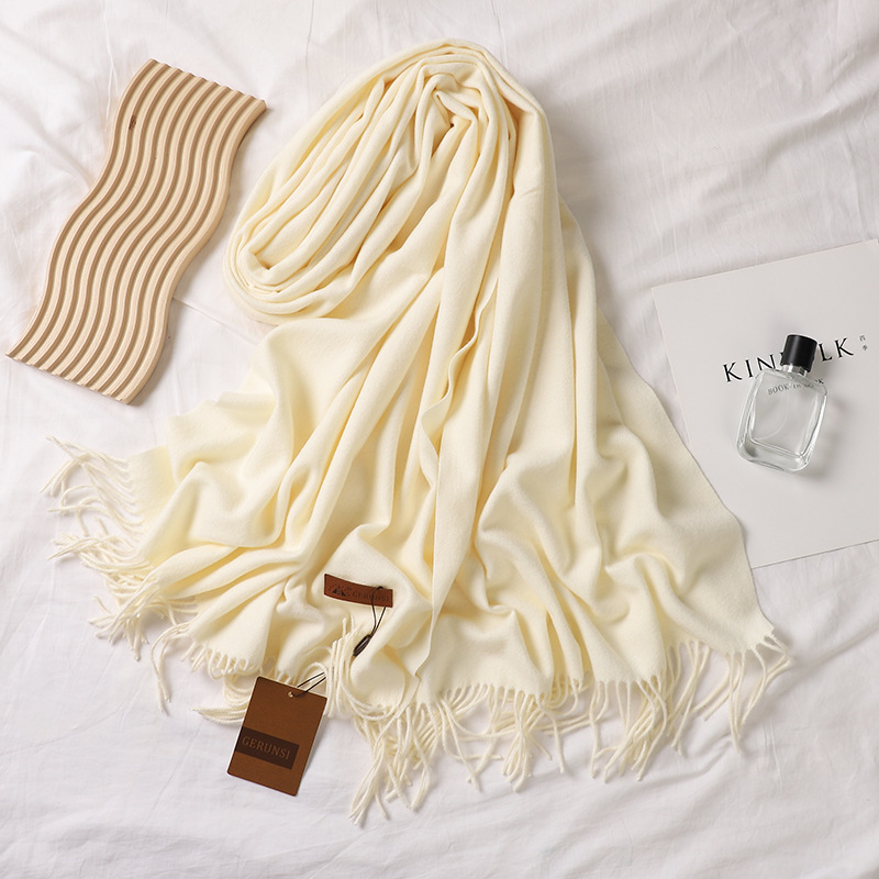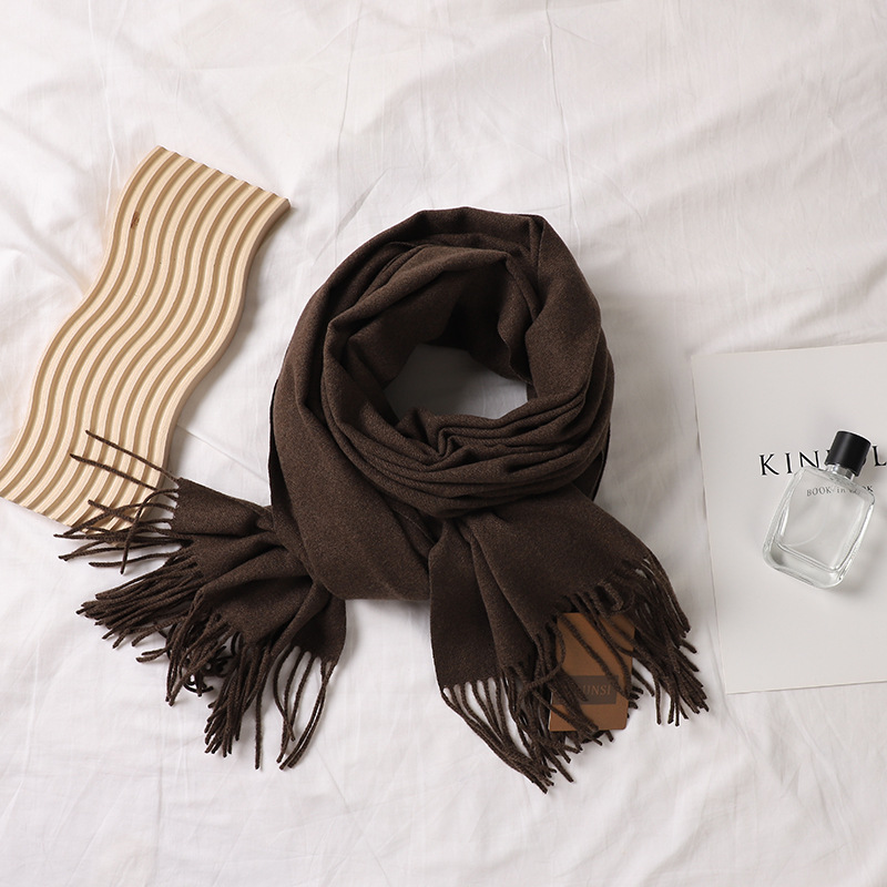 Solid-color tweed scarf for women, 300g, Gorunsi faux cashmere single-color thickened scarf, Japanese-style plain color scarf for autumn and winter