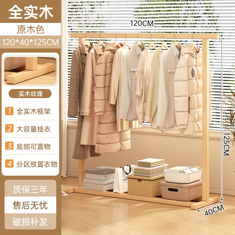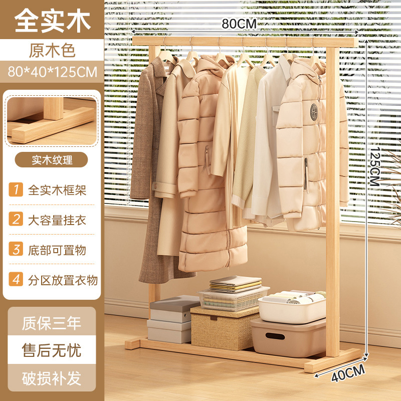 Solid wood clothes hangers, floor-standing bedroom clothes hangers, household coat racks, indoor clothes hangers, pole-type wooden clothes drying racks