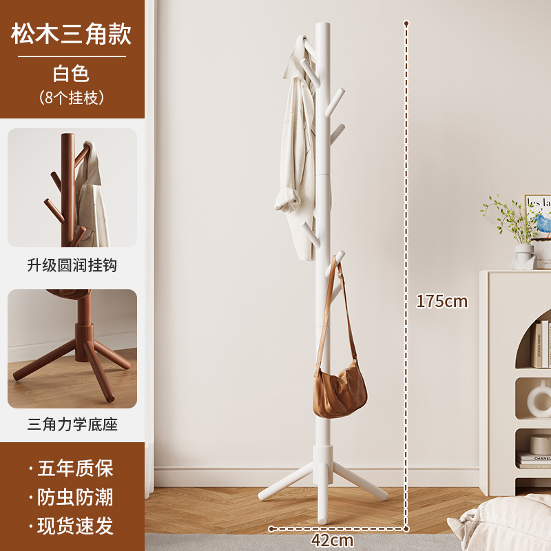 【 Foreign Trade Reinforcement Version 】 Triangular legs - White - Solid Wood (8 hooks)