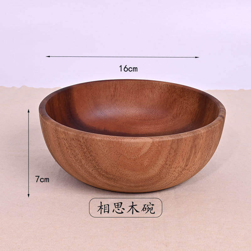 Solid wood round retro-style love wood bowl, wooden Japanese-style salad bowl, solid wood soup bowl. Larger portions are preferred