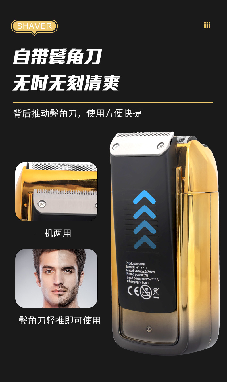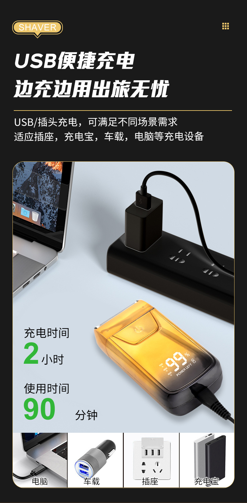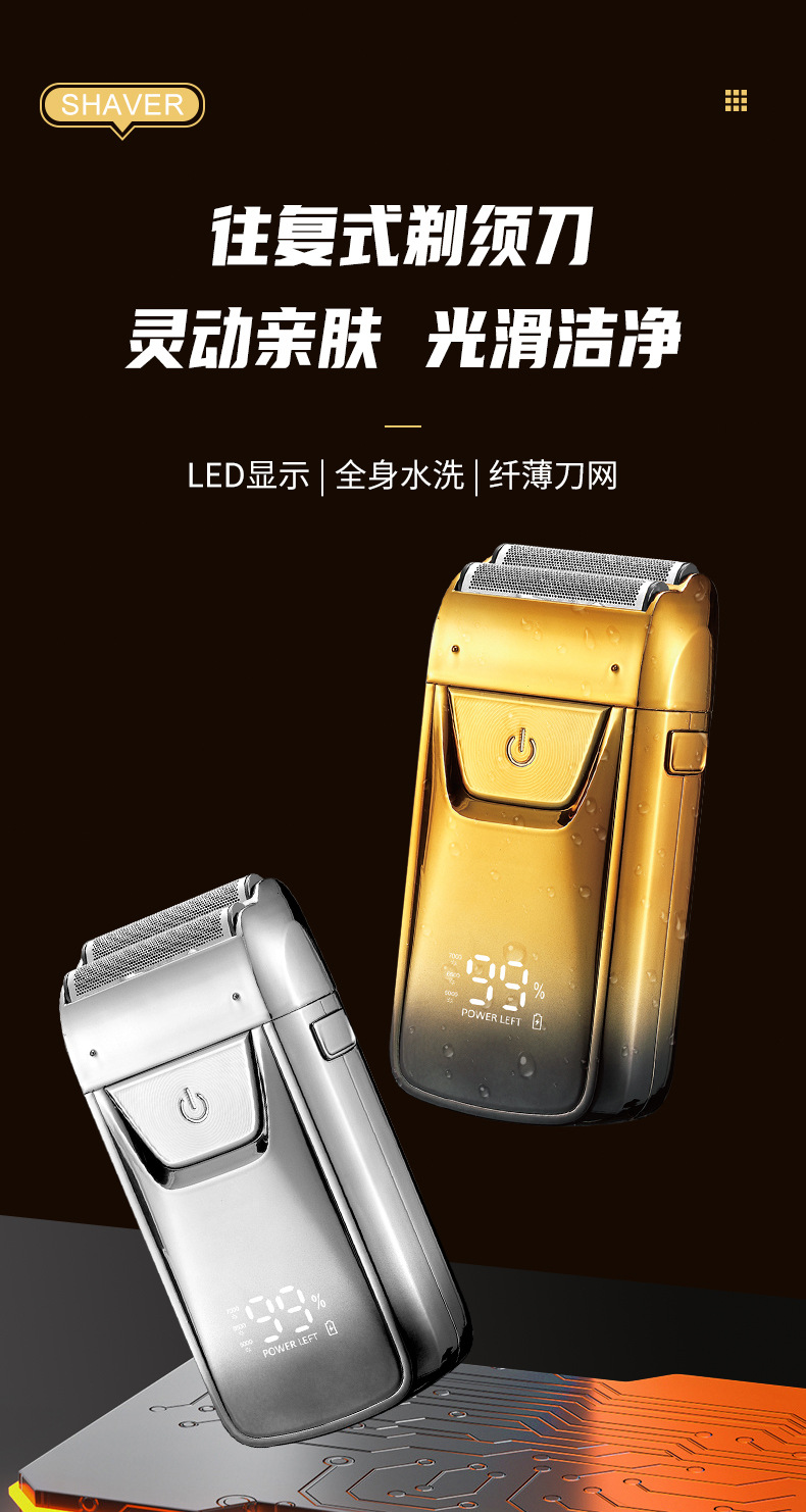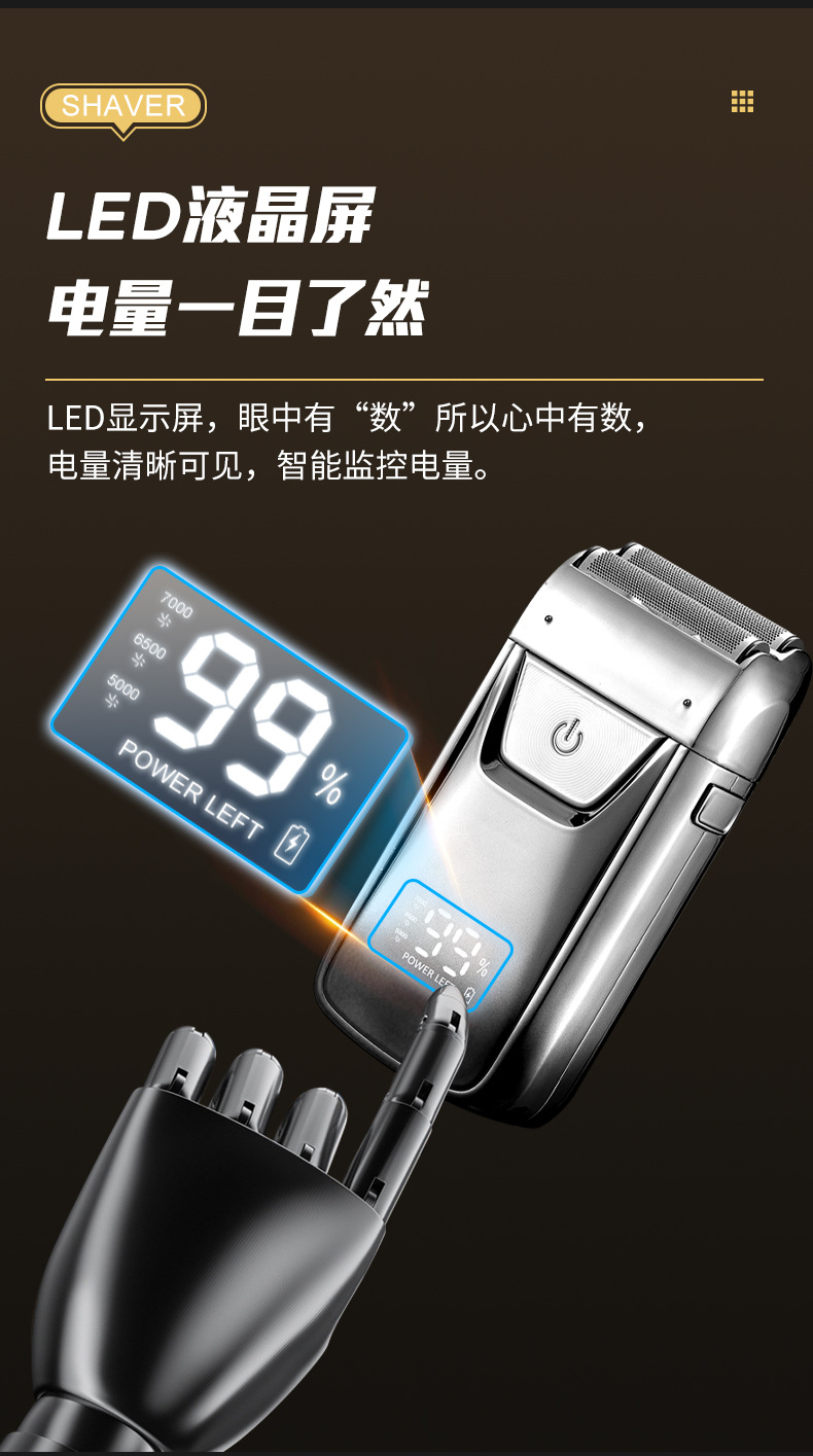 Product selling points: Classic reciprocating type, LED LCD digital display, dual-purpose for hairdressing and shaving, large-capacity eco-friendly lithium battery, dual-purpose for charging and plugging, deep shaving, long-lasting battery life, and comes with a spare blade mesh