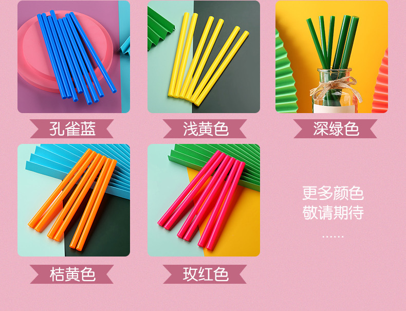 Source factory color glue sticks, hot melt glue strips, 7mm to 11mm, export wholesale, handmade DIY, 12 colors available, customizable