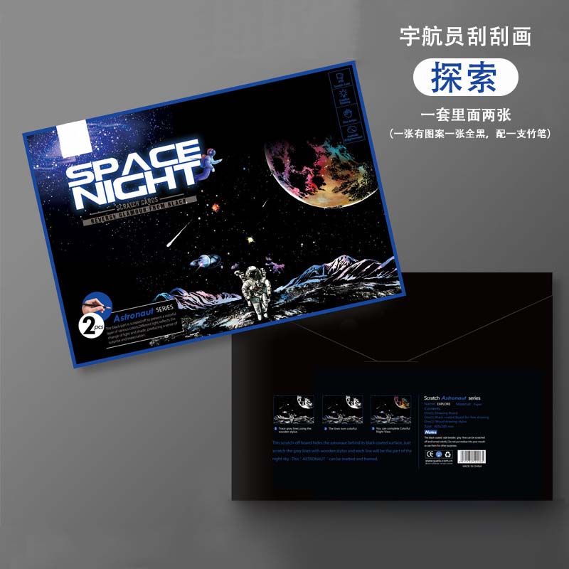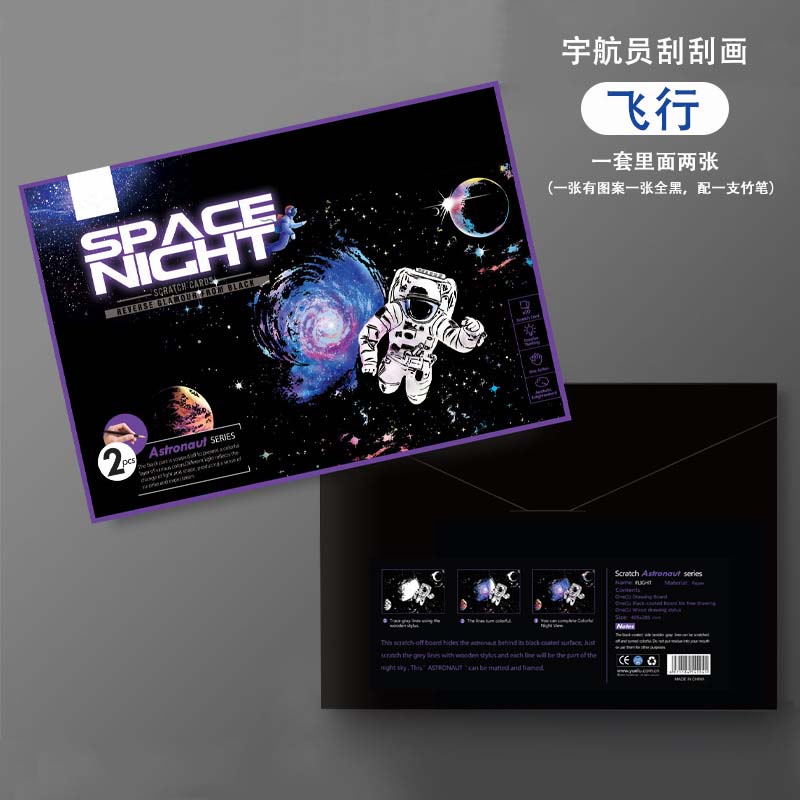 Space planet scratch-off night scene astronaut scratch-off