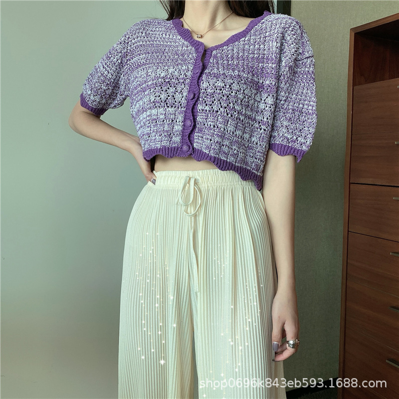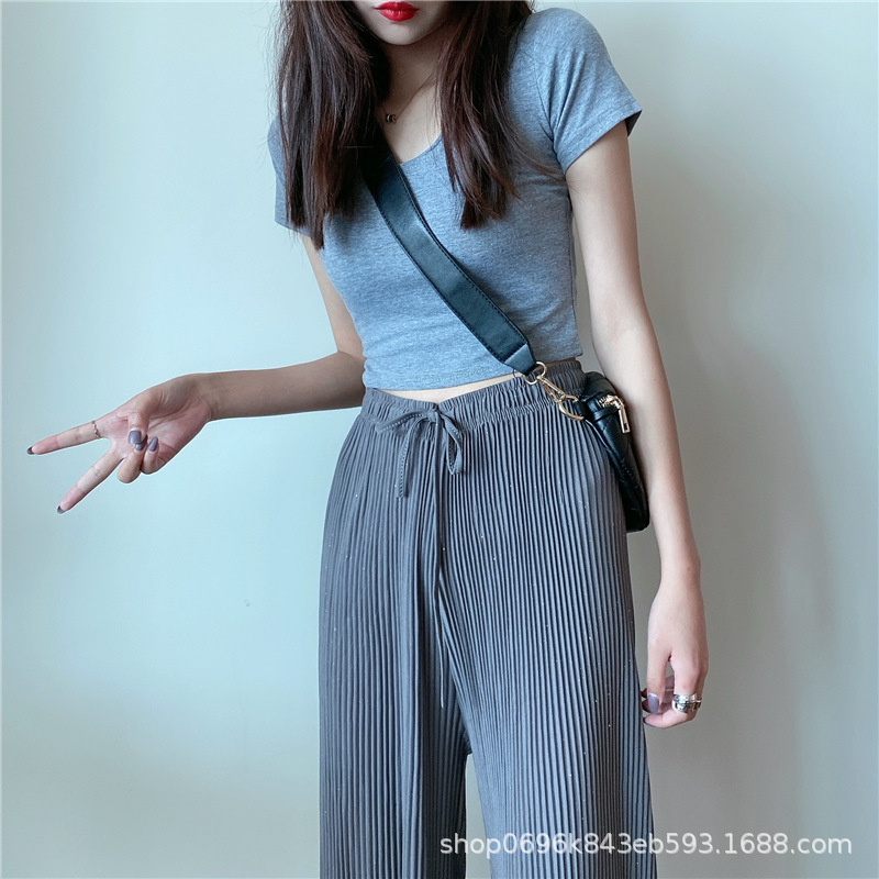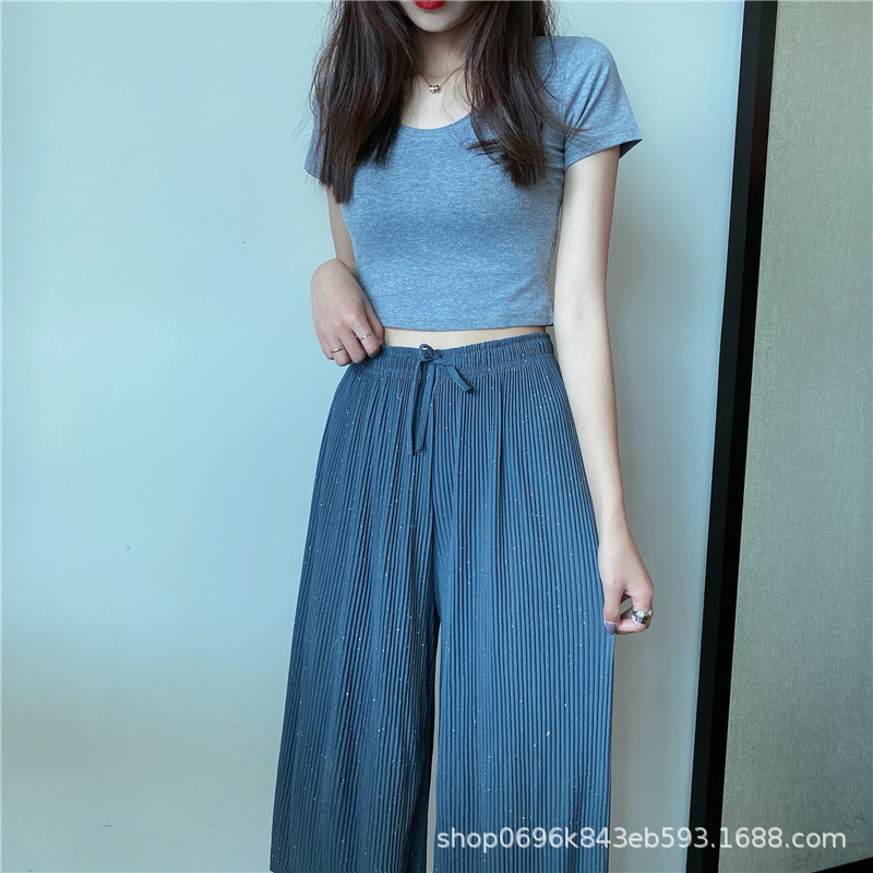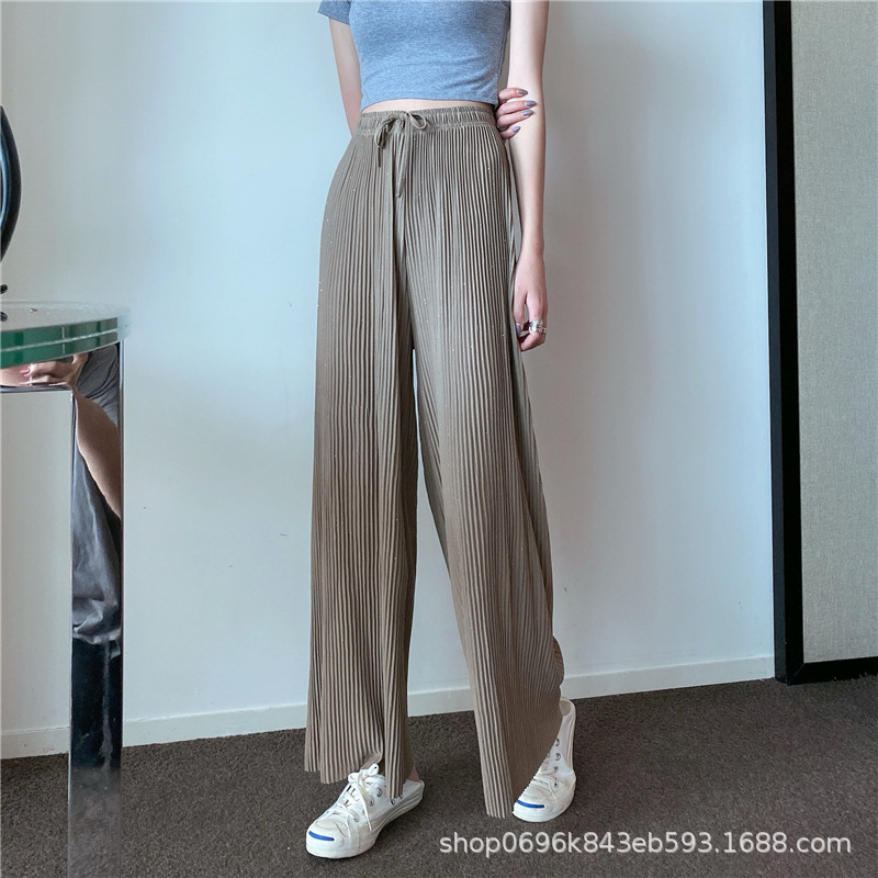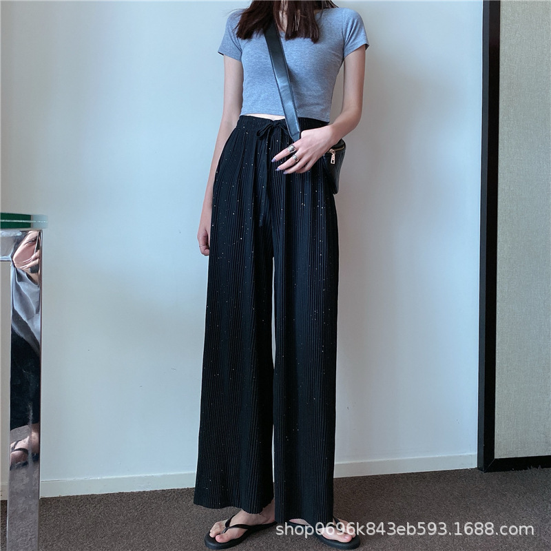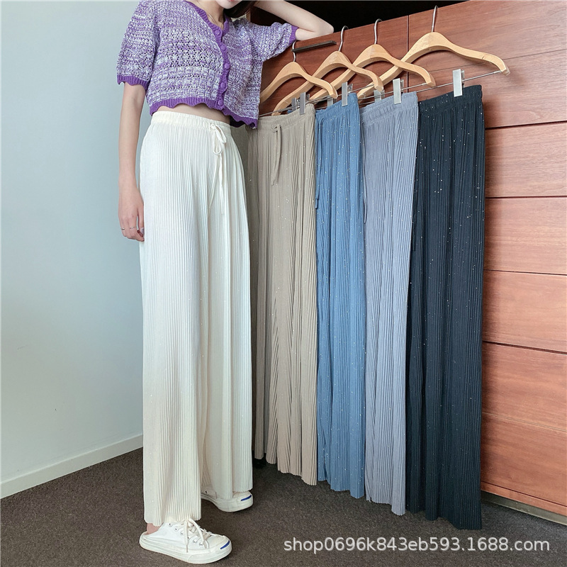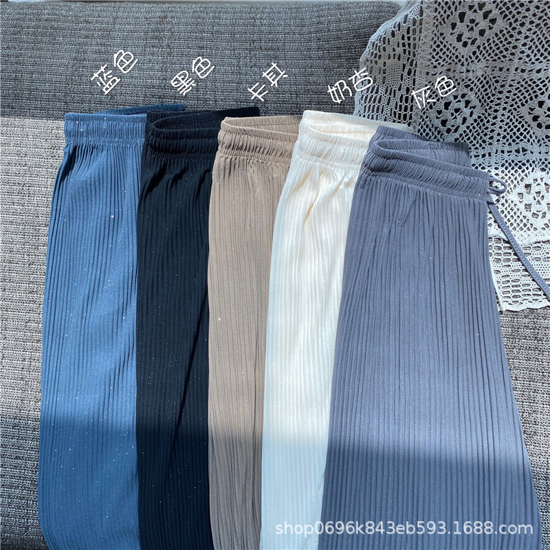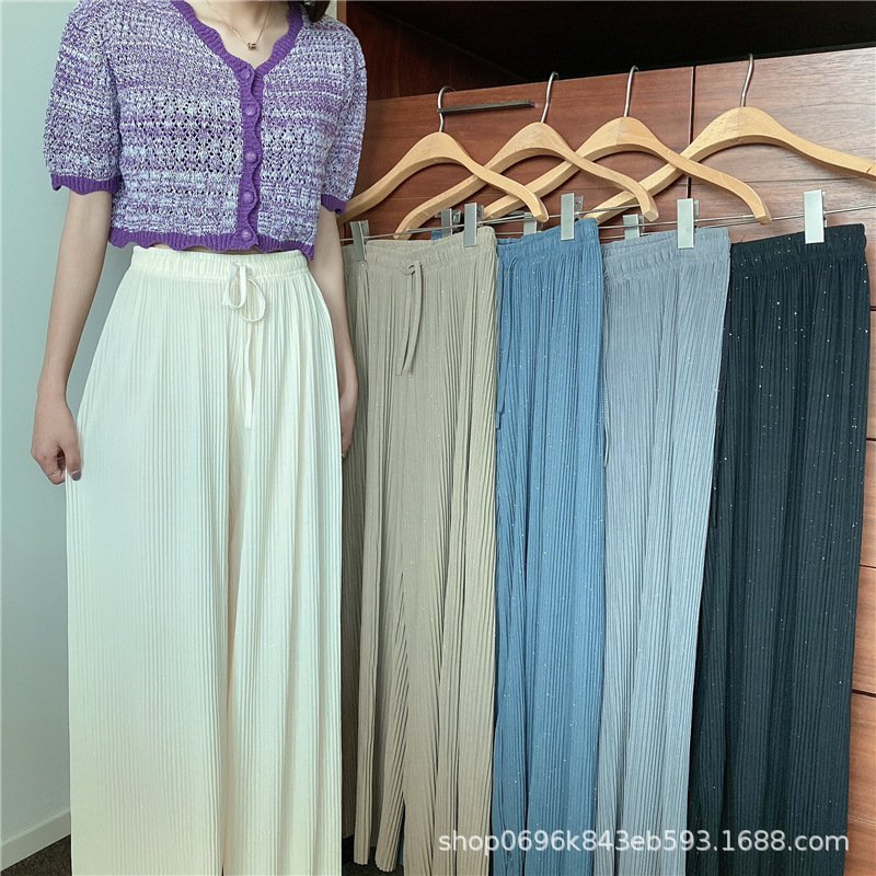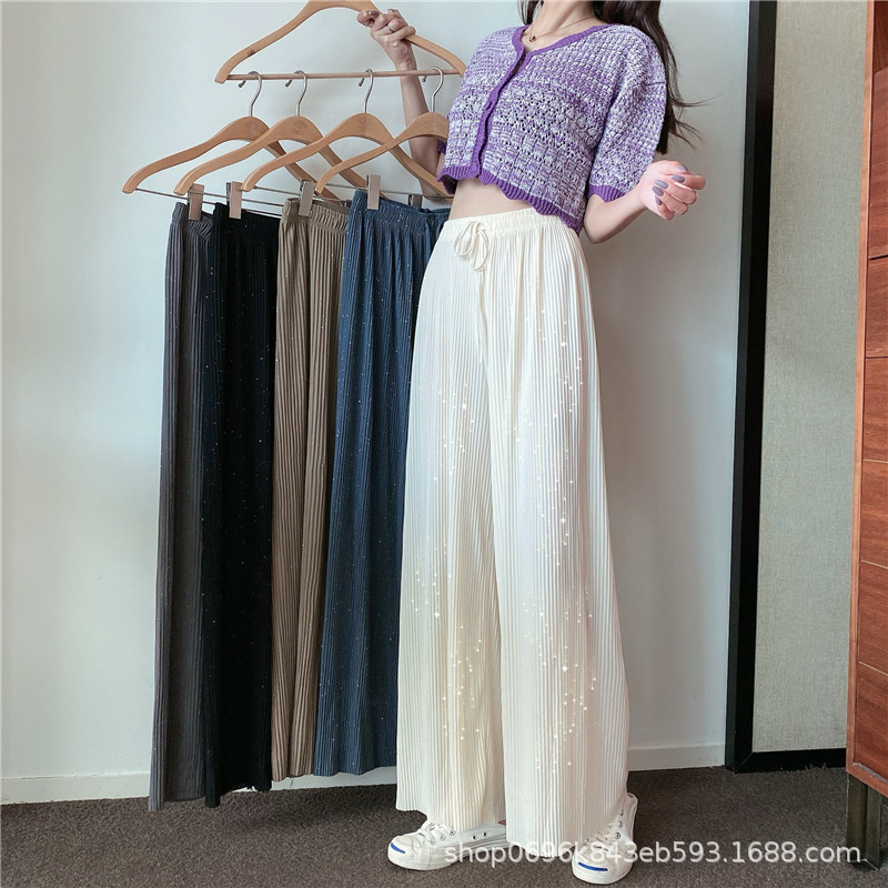Sparkling Wide-leg Pants Women's Spring/Autumn 2023 New style Chiffon pleated ice Silk loose straight-leg thin pants