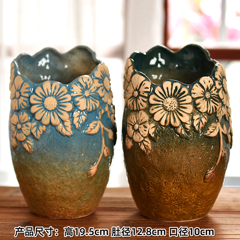 A set of 2 pieces of ceramic and cave-stored flower POTS