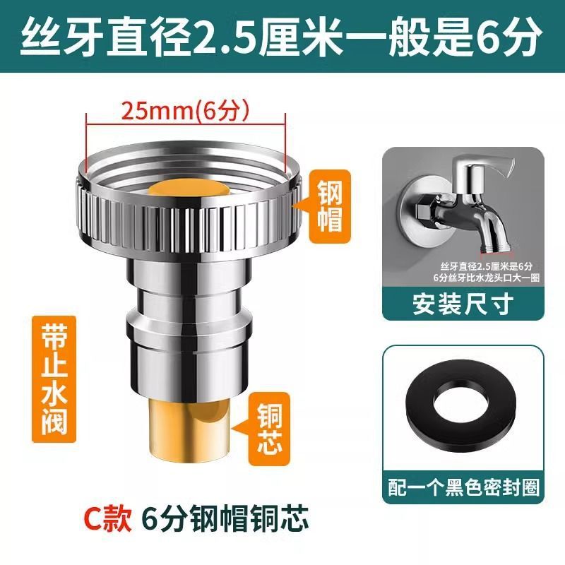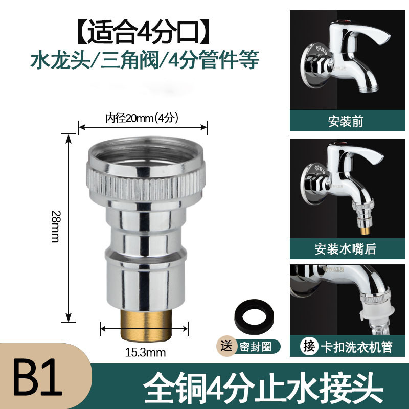 Special water stop valve for washing machine faucet, anti-drop automatic water stop valve, universal 4-point and 6-point faucet adapter