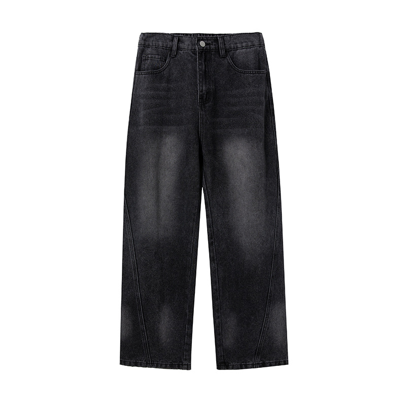 Split design distressed washed jeans for men's spring collection, American streetwear brand loose, retro, slimming, slightly wide long pants