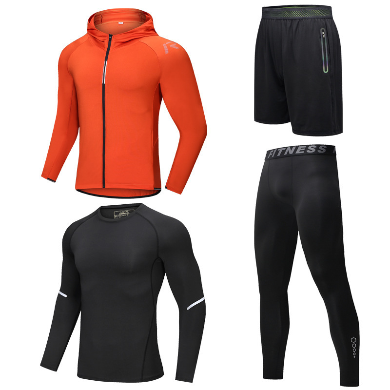 Sportswear set for men, outdoor running, morning and night running, gym sportswear set with reflective strips, elastic leggings