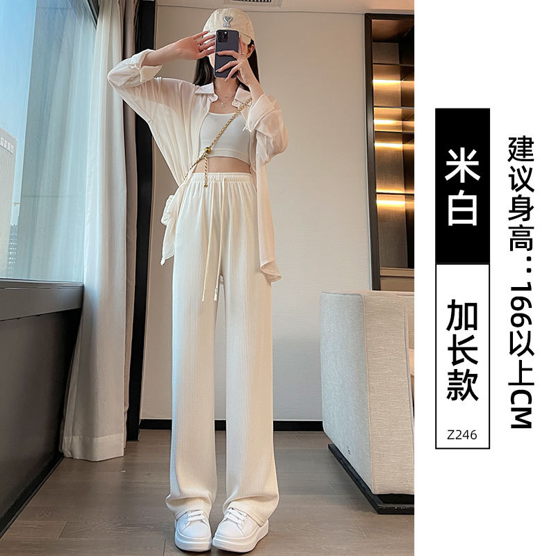 Spring 2024 narrow-knit wide-leg pants for women, high-waisted, drape, casual, sporty, short straight-leg trousers
