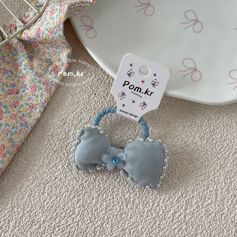 Spring 2025 Sweet bow hair clip for children, pearl side fringe bangs clip, cute high-elasticity elastic band for girls
