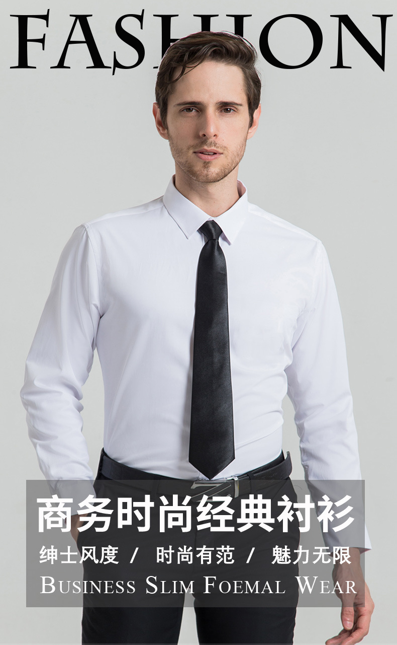 Cross-border autumn men's French shirts, business gowns, long-sleeved white shirts, men's solid color one-inch twill jackets, bestsellers