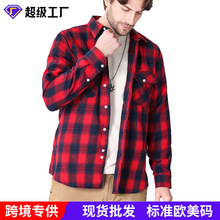 Spring and summer slimming Amazon red brushed checkered high-end long-sleeved double-pocket flannel men's shirt