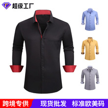 Solid-color Amazon stretch shirt, men's long-sleeved cross-border men's fashion shirt, men's top, slimming cross-border men's clothing