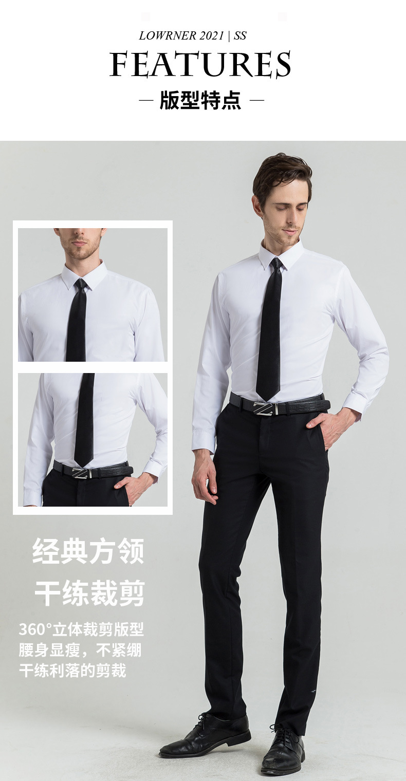 White shirt 2024 Spring Men's long-sleeved square-neck white shirt casual business professional shirt Men's white shirt