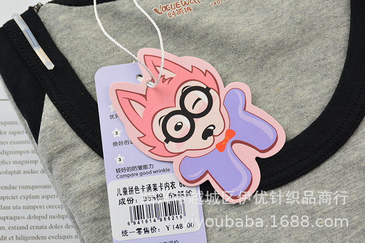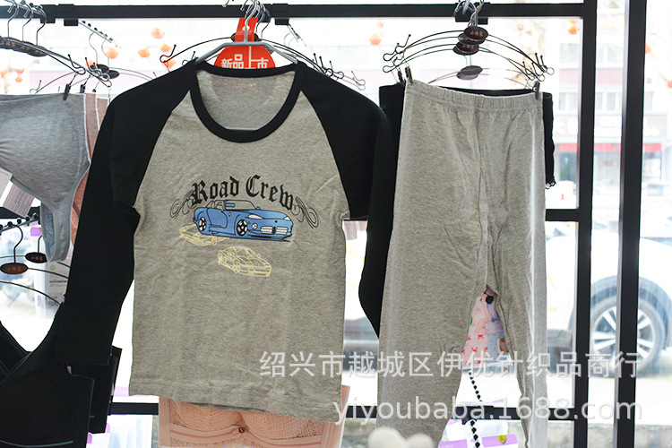 Spring and Autumn Base layer all-cotton Lycra children's boy cool thin round-neck underwear set 6,610 pieces
