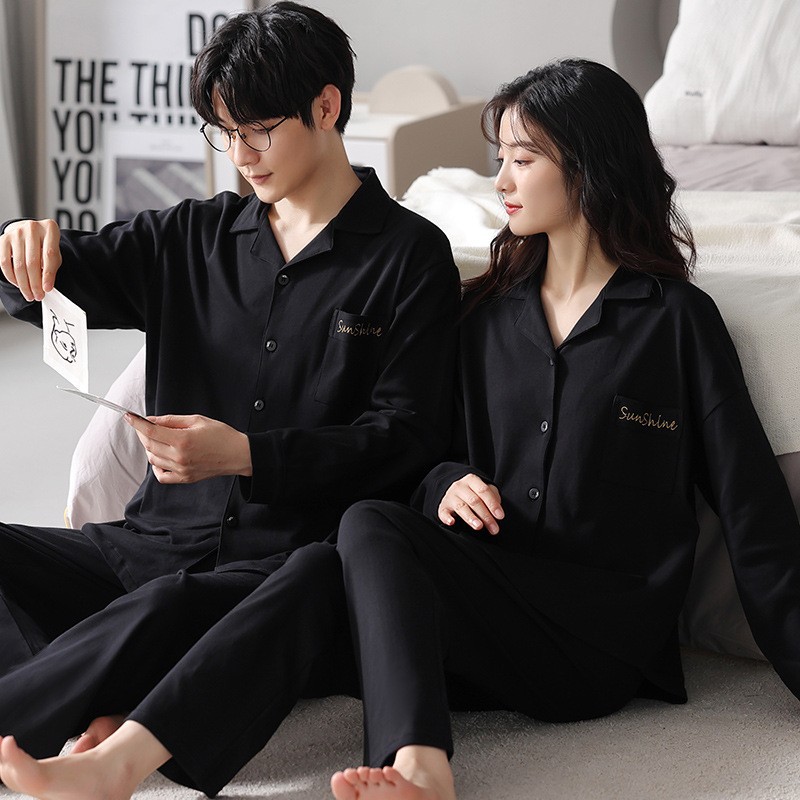 Spring and autumn couple pajamas for women, autumn for men, home wear, long-sleeved shirts, long pants sets, cardigans with front buttons and lapels, casual and home-style